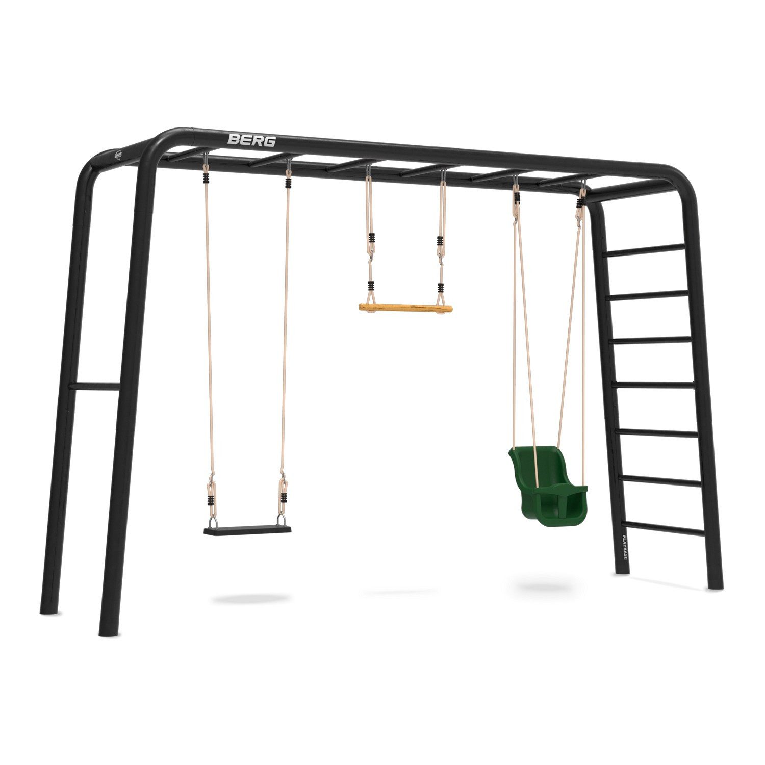 Genieße die unendlichen Möglichkeiten der BERG PlayBase. Dank des stabilen und robusten Rahmens und der patentierten Rohrverbindung ist mit diesem Spielgerät jahrelanger Spielspaß garantiert. Der gesamte Rahmen hat ein modernes und minimalistisches Design, dieser ist absolut zeitlos und kann sich wirklich in jedem Garten sehen lassen. Der Durchmesser beträgt satte 9 cm und sorgt für eine beispiellose Stabilität, zudem ist für den optimalen Schutz der gesamte Stahlrahmen galvanisiert, das heißt mit einer korrosionsschützenden Beschichtung überzogen und zusätzlich noch pulverbeschichtet. Das pulverbeschichtete 1,5 mm dicke schwarze Rohr gibt Rost keine Chance. Außerdem gewähren wir auf das BERG Klettergerüst eine Garantie von bis zu 13 Jahren, damit du unbeschwert Sport treiben, spielen oder dich erholen kannst. Wähle deine Lieblingsaccessoires und schaffe dir einen Ort zum Trainieren oder Entspannen.