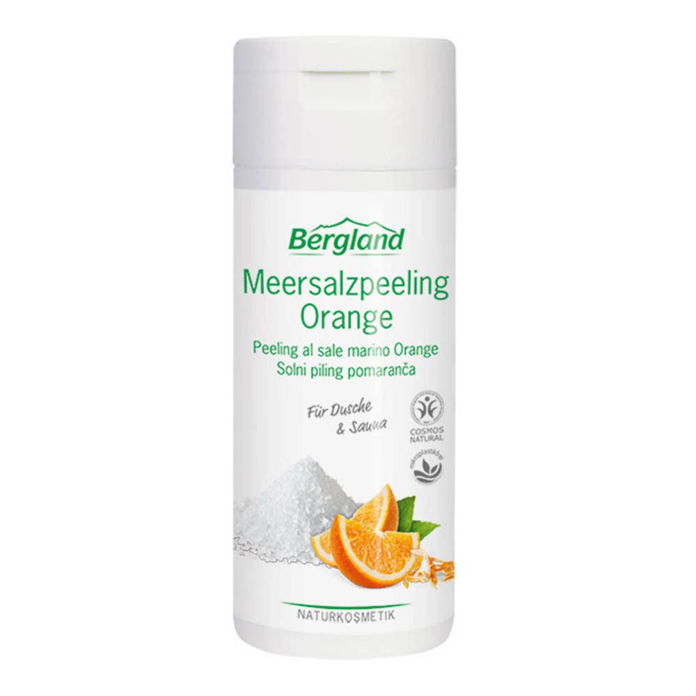 Das Bergland Salzpeeling Orange mit feinem Meersalz reinigt die Haut sanft, entfernt abgestorbene Hautschüppchen und regt die Hautdurchblutung an. Mandel- und Sonnenblumenöl verwöhnen die Haut intensiv. Der fruchtige Duft der Orange erfrischt und belebt.