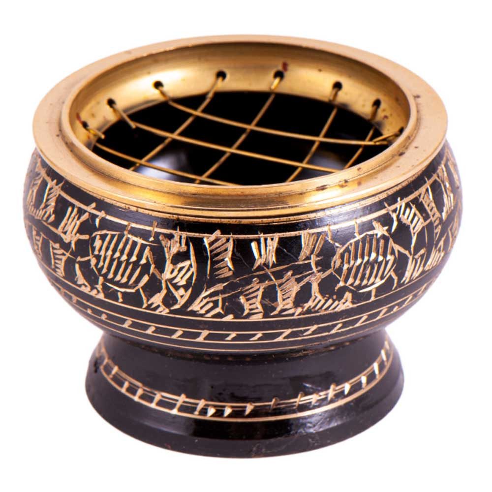 Netzräuchergefäß Messing mit Netzeinsatz Schwarz/Gold.
