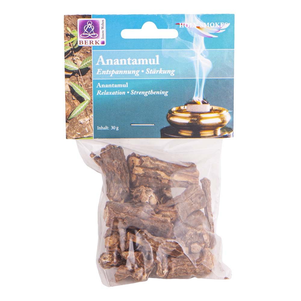 Das Sanskrit-Wort für Anantamul ist Sugandhi, was soviel bedeutet wie (süßer) Wohlgeruch. Im Ayurveda wird neben dem besonderen, süß-balsamischen, karamelligen Duft auch eine allgemein stärkende Wirkung beschrieben. Zum Räuchern bitte im Mörser zerkleinern und vorsichtig dosieren! Zum Räuchern auf Kohle oder Sieb.
