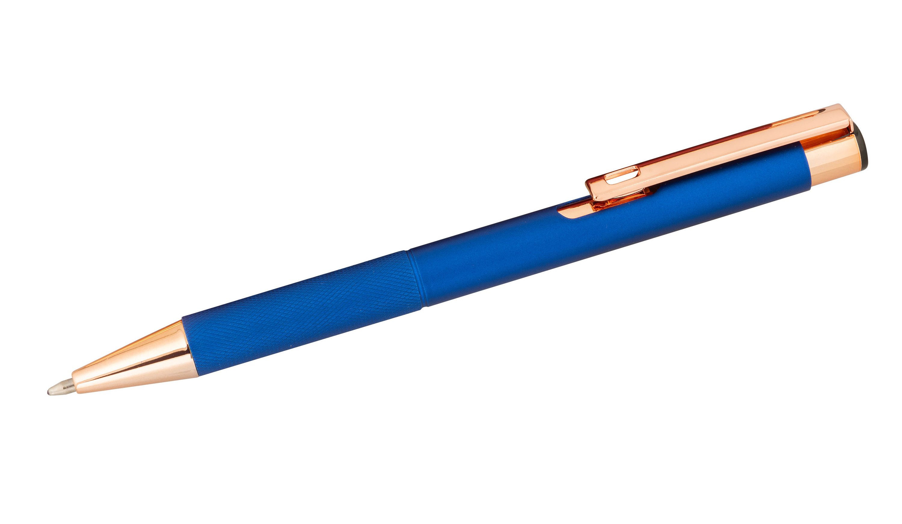 Kugelschreiber Kugelschreiber / aus Metall mit rosegoldene Beschläge / Farbe: blau