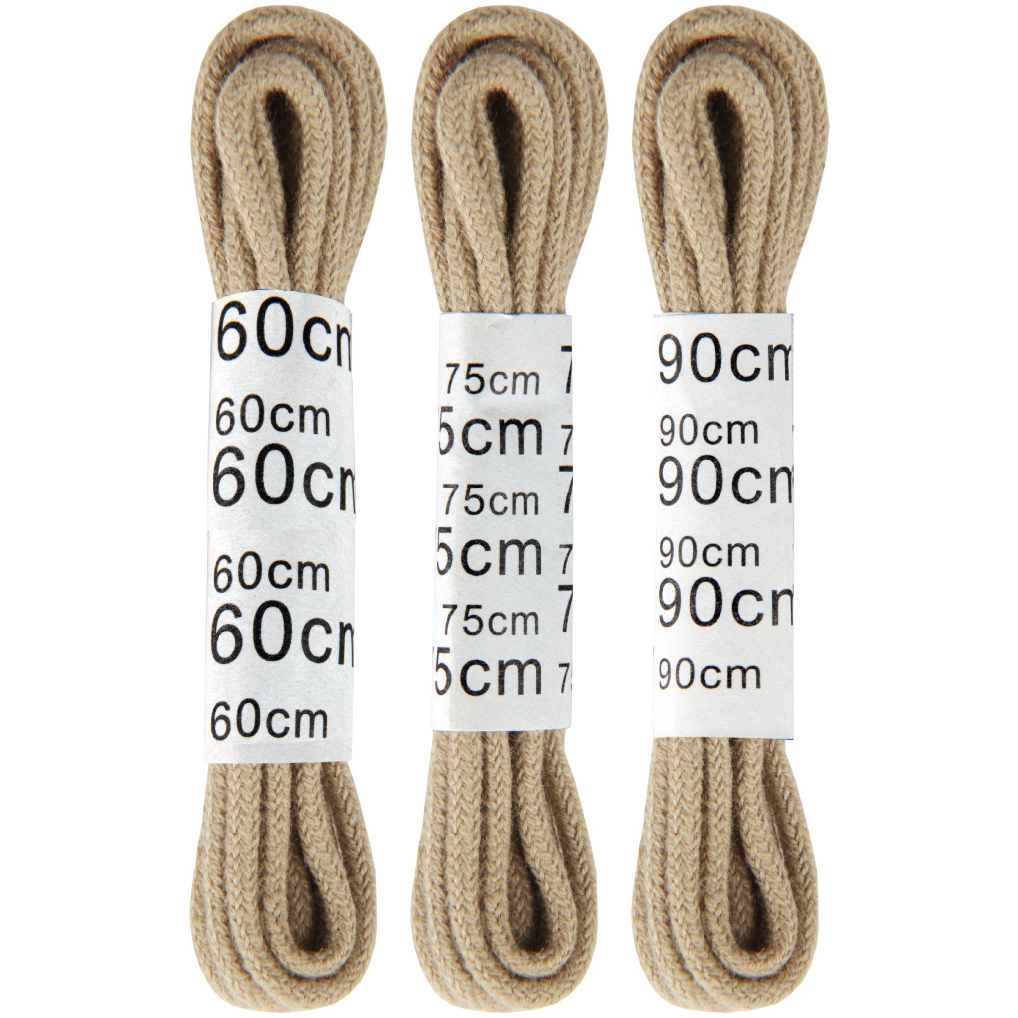 Das 3er-Pack der hochwertig verarbeiteten Schnürsenkel, welche zu 100% aus Baumwolle bestehen, bietet Ihnen eine eine robuste und reißfeste Option Ihre Schuhe zu binden