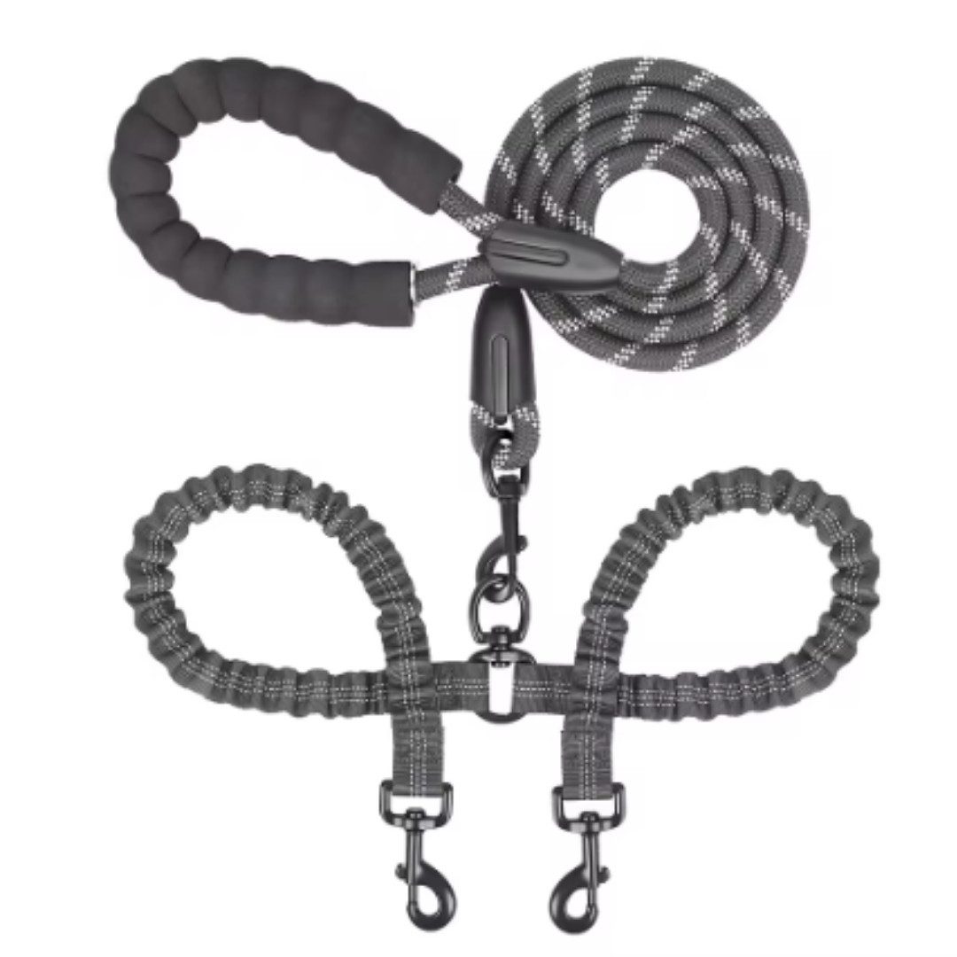 Entdecken Sie die Doppelleine für Hunde, das ideale Accessoire für Besitzer von mehreren Hunden. Diese Hundeleine wurde entwickelt, um Komfort, Sicherheit und Praktikabilität zu bieten, und ermöglicht es Ihnen, zwei Hunde gleichzeitig auszuführen, ohne sich zu verheddern und mit voller Kontrolle. Perfekt für tägliche Spaziergänge oder Trainingseinheiten, macht sie jeden Ausflug angenehmer und weniger stressig.