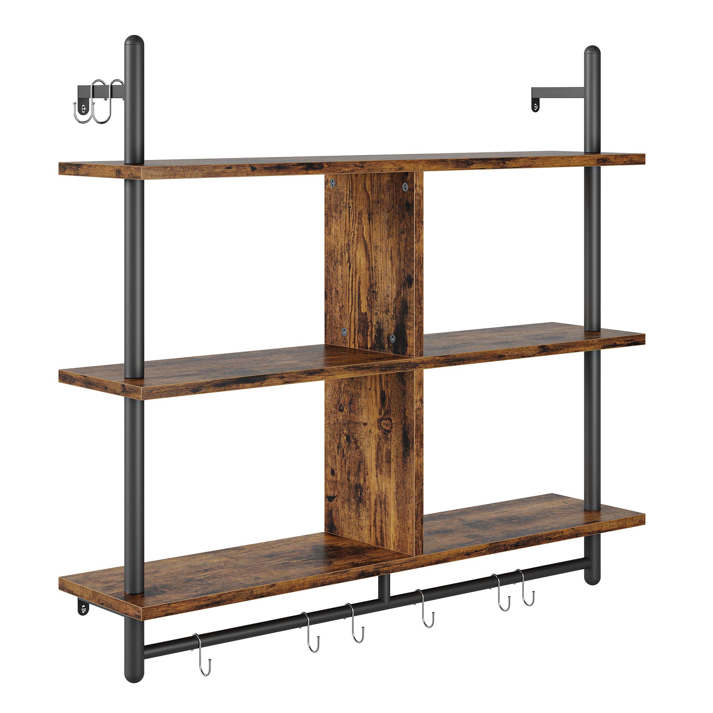 Das Wandregal spart Platz und bietet mit drei Etagen sowie 8 S-Haken viel Stauraum für Alltagsgegenstände.