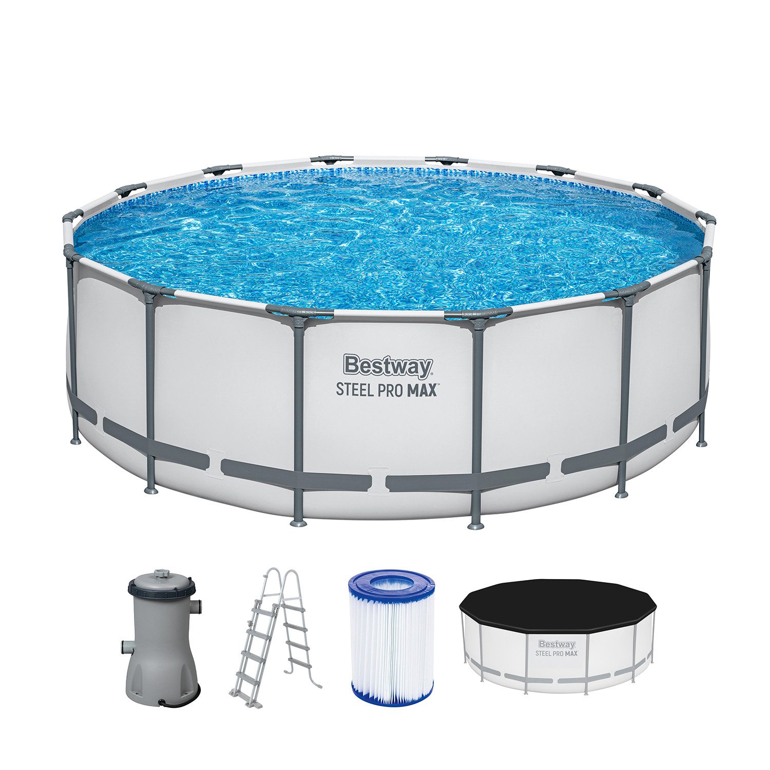Steel Pro MAX™ Frame Pool Komplett-Set mit Filterpumpe Ø 427 x 122 cm, lichtgrau, rund