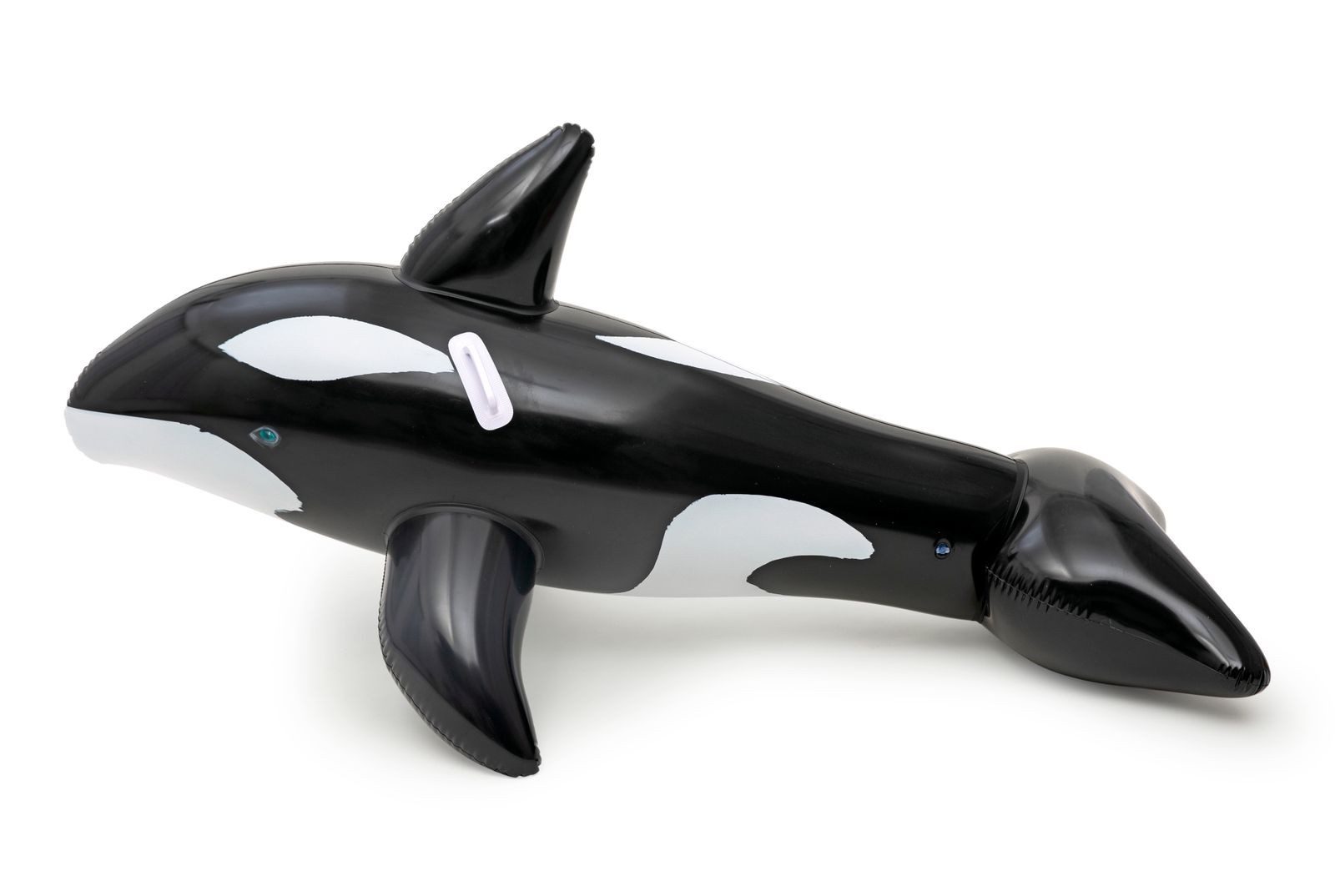 Die schwarze Oberfläche mit weißem Orka‑Muster lässt Kinderaugen leuchten – ob im Pool, See oder am Strand. Dank der praktischen Sicherheitsventile lässt sich der Wal schnell aufblasen und wieder entleeren. Im Falle eines kleinen Missgeschicks sorgt der beiliegende Reparaturflicken für schnelle Abhilfe.