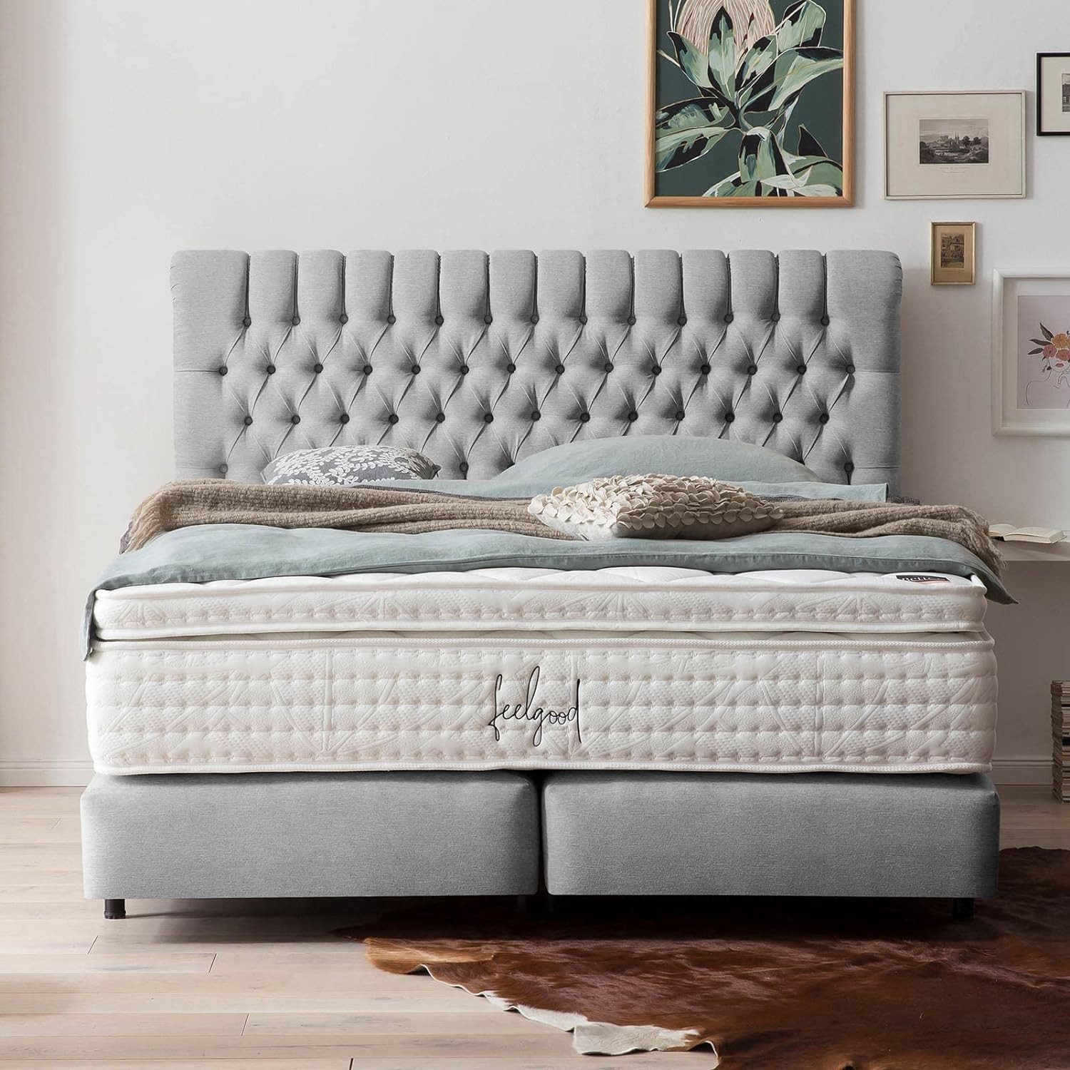 Ausstattung | 7-Zonen Taschenfederkern-Matratze Kopfteil hinten mit echtem Stoff bezogen Schwebeoptik Taschenfederkern-Unterbox |