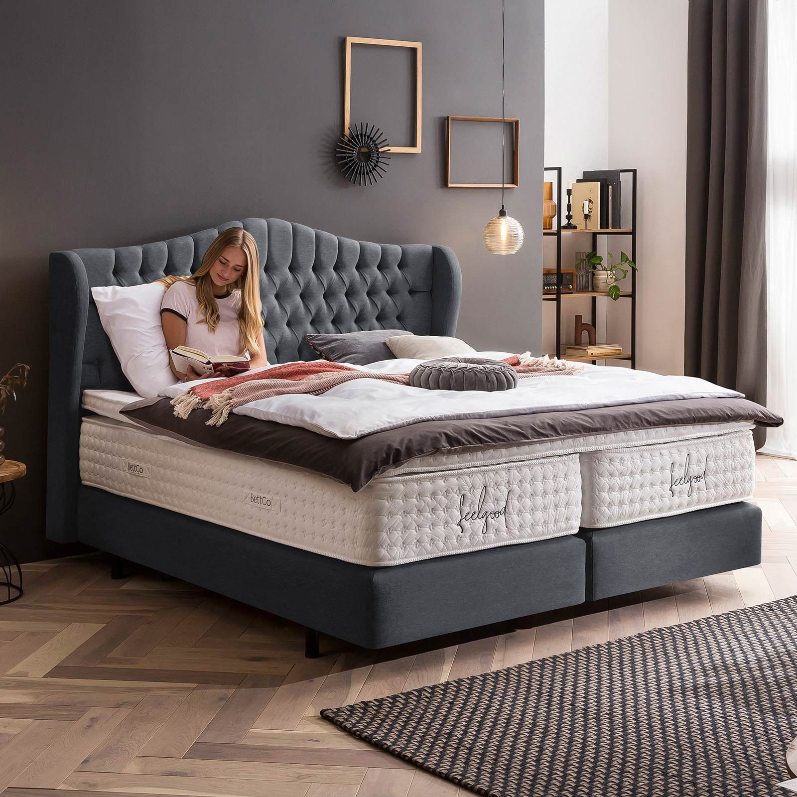 Ausstattung | 7-Zonen Taschenfederkern-Matratze Kopfteil hinten mit echtem Stoff bezogen Schwebeoptik Taschenfederkern-Unterbox |