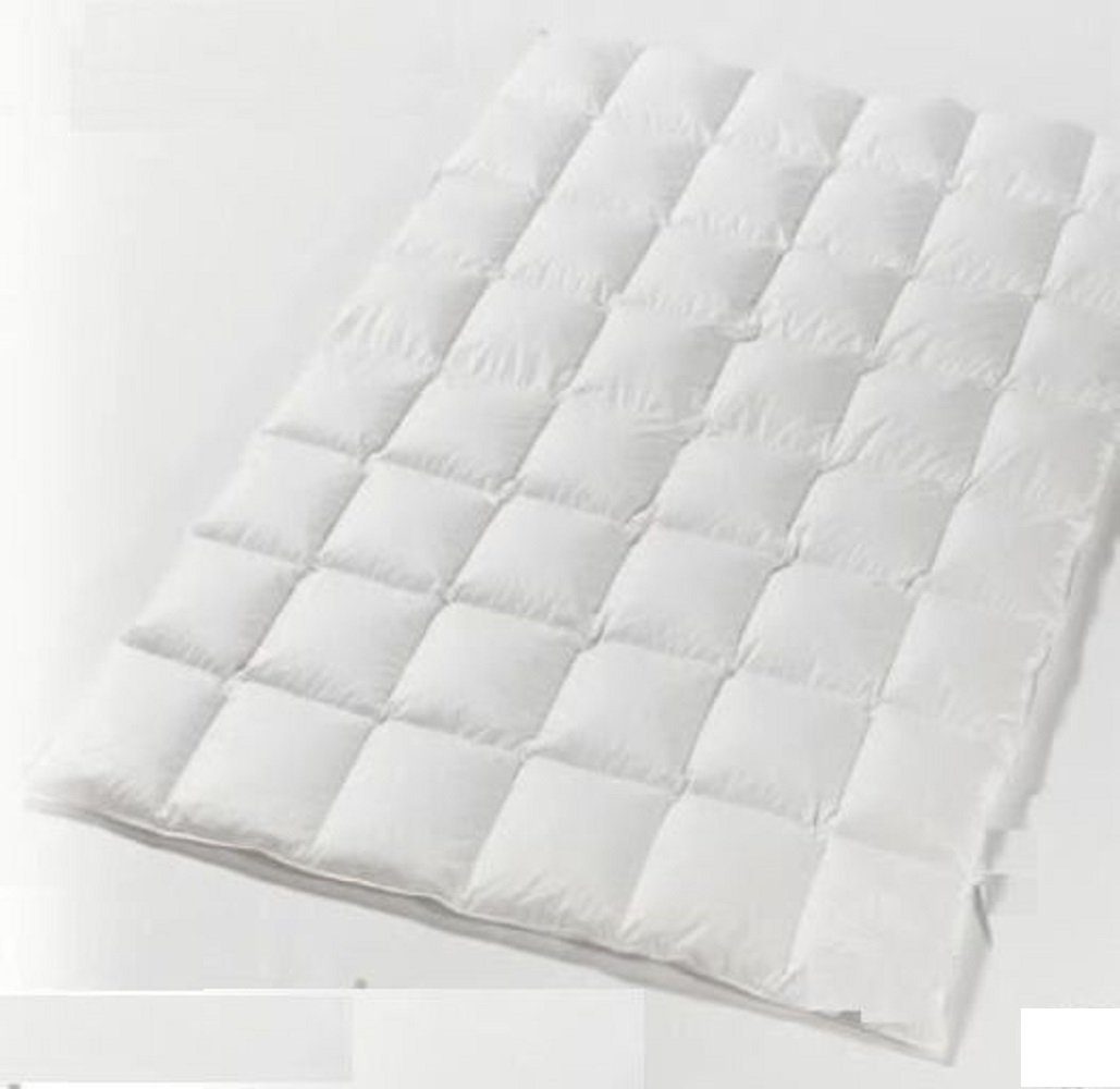 Hofmanns Franken Daunen-Kassetten-Bett, 6x8, 135/200 cm. Die ideale Bettdecke für Wasserbetten. Mittelwarme, leichte Ganzjahresdecke. Natur pur: Daunen, Baumwolle und sonst nichts! fixierte Füllung - ohne jegliche Kältezonen. Füllung: 480 Gramm neue weiße fränkische Gänsedaunen mit natürlichen Farbeinschüssen Klasse 1 (100% Gänsedaunen), Bezug: feinste Soft-Baumwoll-Einschütte , 100% Baumwolle, superweich und superleicht, Innensteghöhe 2 cm, Farbe: weiß mit Biese. Wärmegrad 3. Wasch- und Pflegehinweise: Waschbar bis 60°C, trocknergeeignet. Gütesiegel und Kennzeichnungen: Hausstauballergiker geeignet, kein Lebendrupf, eigene Anfertigung. Wir machen Ihnen die Entscheidung leicht. Daunenbetten mit 100% Daunenfüllung sind die qualitativ hochwertigeren und daher auch kostspieligeren Betten. Hierbei können Sie mit Sicherheit nur die richtige Entscheidung treffen, das wird Ihnen jeder Fachhändler bestätigen. Die Lebenserwartung einer Feder liegt zwischen 5-10 Jahren. Bei einer Daune liegt sie zwischen 20-30 Jahren. Das liegt daran, dass eine Feder brechen kann und somit schneller verschlissen ist als eine Daune. Ein einfacher Händler kann Ihnen nicht sagen was wirklich in Ihren Betten ist. Er muss sich darauf verlassen, was auf dem Bett geschrieben ist. Wir dagegen können Ihnen zeigen, welche Daunen und Federn in Ihren Betten gefüllt werden. Gerne können Sie auch dabei sein, wenn Ihre Betten bei uns angefertigt werden. Все unsere Daunen- und Feder Produkte werden in unserem Hause nach Auftragseingang selbst gefüllt und direkt an Sie ausgeliefert. Sie erhalten also immer frisch angefertigte Ware. Mehr Sicherheit kann Ihnen niemand geben! 10775