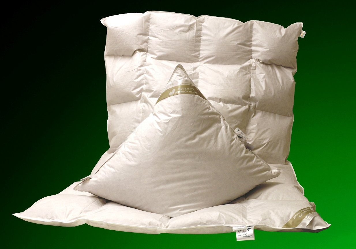 Hofmanns Leichtes Set Daunen Kassetten-Bett 135/200 cm mit Kopfkissen 40/80 cm. Daunen-Kassetten-Bett 4x6 - Mittelwarme, leichte Ganzjahresdecke mit 24 Feldern und 3 cm Innenstegen. Kein Verrutschen der Füllung, keine Kältebrücken. Füllung: 900g neue can. silberweiße Daunen, Klasse 1 (90% Daunen/ 10% Federn), Bezug: feinste Soft-Baumwoll-Einschütte, 100% Baumwolle NM 100, angenehm weich, Innensteghöhe 3 cm, Farbe: weiß mit Biese, Wärmegrad 3. Kissen 40/80 cm, Strapazierfähiges, gut gefülltes Kopfkissen. Füllung: 550g neue can. silberweiße Federn, Klasse 1 (100% Federn), Bezug: Soft-Baumwoll-Einschütte NM 70, 100% Baumwolle. Wasch- und Pflegehinweise: Beide Produkte waschbar bis 60°C, trocknergeeignet. Gütesiegel und Kennzeichnungen: für Hausstauballergiker geeignet, kein Lebendrupf, eigene Anfertigung. 7785