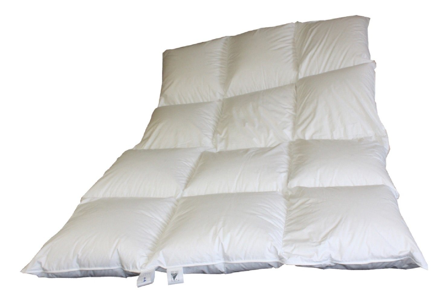 Betten Hofmann Franken Winter-Daunendecke 3x4, 155/200 cm Traumhaft warmes Winterbett! Einfach himmlisch! Natur pur: Daunen, Baumwolle und sonst nichts! fixierte Füllung - ohne Kältezone Wärmegrad 5 Füllung: 1140 g neue weisse fränkische Gänsedaunen mit natürlichen Farbeinschüssen Klasse 1 (100% Gänsedaunen) kein Lebendrupf Bezug: feinste Soft-Baumwoll-Einschütte, 100% Baumwolle superfein Farbe: weiss mit Biese Innensteghöhe 3 cm waschbar bis 60°, trocknergeeignet. für Hausstauballergiker geeignet)