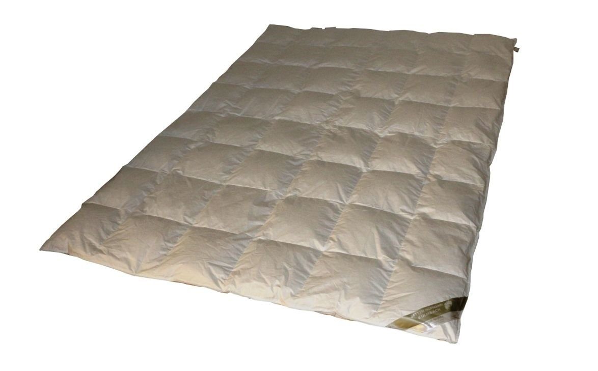 Hofmanns Exklusiv SIBIRIA Daunen Kassetten Bett 6x8 135/200 cm. Die ideale Bettdecke für Wasserbetten. Leichte, mittelwarme Ganzjahresdecke. Natur pur: Daunen, Baumwolle und sonst nichts! Füllung: 430g neuer grauer 1A1A sibirischer Wildgänseflaum, Klasse 1 (100% Wild-Gänsedaunen), fixierte Füllung - ohne jegliche Kältezonen, Bezug: feinste Baumwoll-Einschütte NM 100, 100% Baumwolle, superfein, Innensteghöhe 2 cm, Farbe: weiß mit Biese, Wärmegrad 3. Wasch- und Pflegehinweise: Waschbar bis 60°, trocknergeeignet. Gütesiegel und Kennzeichnungen: kein Lebendrupf, eigene Anfertigung in unserem Hause! Wir machen Ihnen die Entscheidung leicht. Daunenbetten mit 100% Daunenfüllung sind die qualitativ hochwertigeren und daher auch kostspieligeren Betten. Hierbei können Sie mit Sicherheit nur die richtige Entscheidung treffen, das wird Ihnen jeder Fachhändler bestätigen. Die Lebenserwartung einer Feder liegt zwischen 5-10 Jahren. Bei einer Daune liegt sie zwischen 20-30 Jahren. Das liegt daran, dass eine Feder brechen kann und somit schneller verschlissen ist als eine Daune. Ein einfacher Händler kann Ihnen nicht sagen was wirklich in Ihren Betten ist. Er muss sich darauf verlassen, was auf dem Bett geschrieben ist. Wir dagegen können Ihnen zeigen, welche Daunen und Federn in Ihren Betten gefüllt werden. Gerne können Sie auch dabei sein, wenn Ihre Betten bei uns frisch gefüllt werden. Mehr Sicherheit kann Ihnen niemand geben! 7961