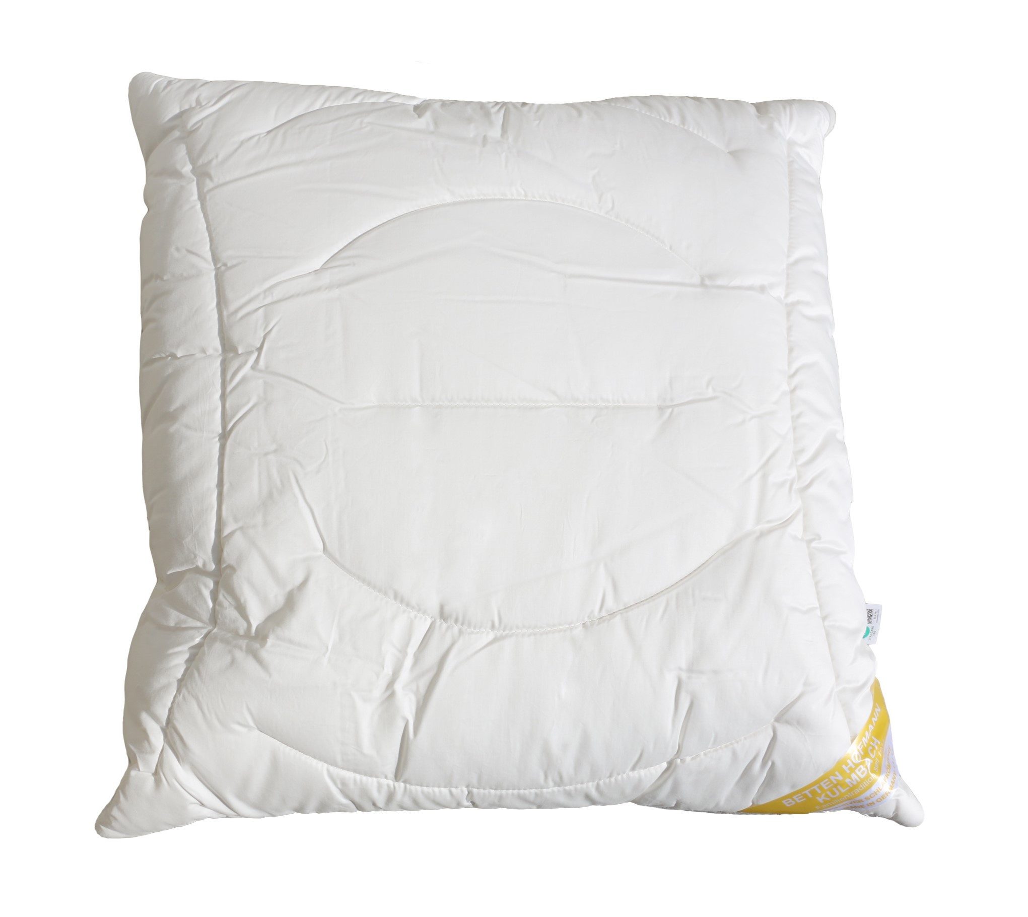 Premium Merino-Zirben-Kopfkissen, 80 x 80 cm. Wohlfühlkissen, 100% Natur. Bezug: Premiumsatin mit Aloe-Vera, 100% Baumwolle, Füllung: Reine Schafschurwolle aus kontrolliert biologischer Tierhaltung mit eingestreuten Zirbenholzspänen, Hülle: Versteppt mit Schafschurwolle und Reißverschluss, Kern: Im Inneren der Hülle befindet sich noch ein Kissen, das mit KBT-Merino-Schafwolle (100%) und Zirbenholzspänen gefüllt ist. Außerdem ist es mit einem Reißverschluss versehen. Die Füllung aus 100% Merinowolle mit Zirbenholzspänen und der Bezug aus feinstem Baumwoll-Satin sorgen für einen natürlichen Temperaturausgleich und hervorragenden Feuchtigkeitstransport. Dieses hochwertige Kissen bringt ein gesundes und trockenes Schlafklima, d.h. erholsam schlafen und entspannt aufwachen. Auf einem Merino-Kissen liegen Sie besonders gut, ohne zu schwitzen. Außerdem verfügt dieses Kissen über eine optimale stützende Anpassung und einen herrlich angenehmen Duft. Bezug waschbar im Wollwaschgang bei 30°C, Innenkissen nicht waschbar. Nicht trocknergeeignet. Geliefert mit Aufbewahrungstasche. Deutsches Markenprodukt. Lieferzeit ca. 7 Werktage. 9056