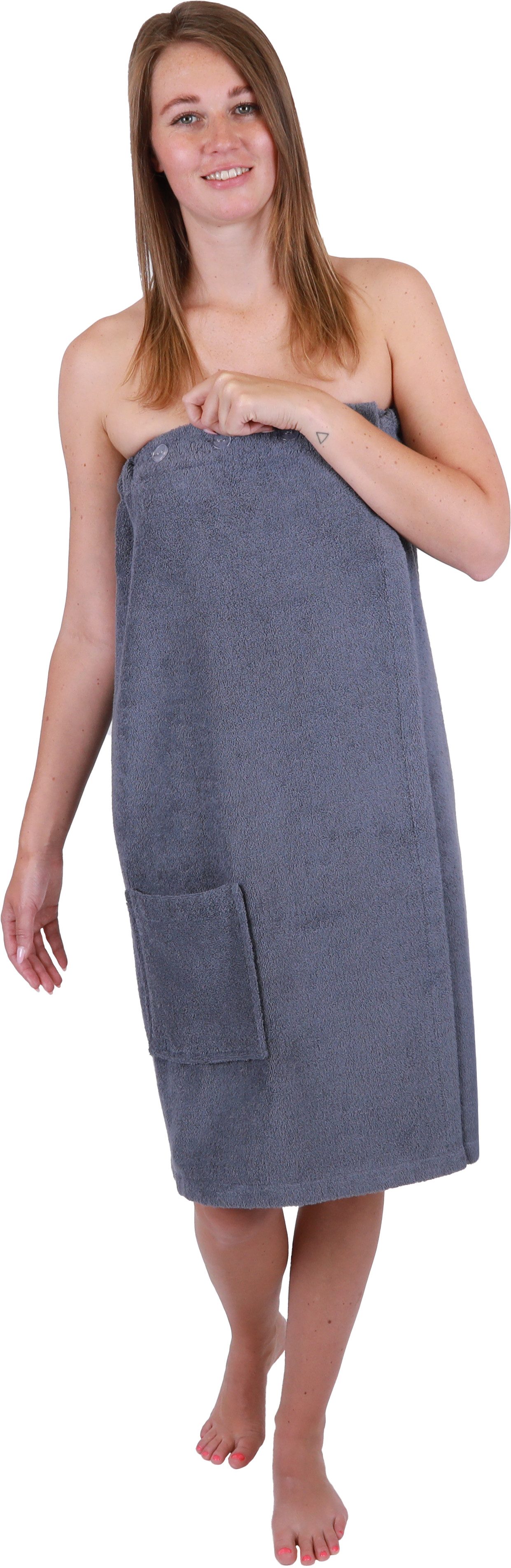 Weiche etwas dickere Frottee Qualität! Длина optimal für mich, 160cm groß, geht mir schön unterhalb der Knie!