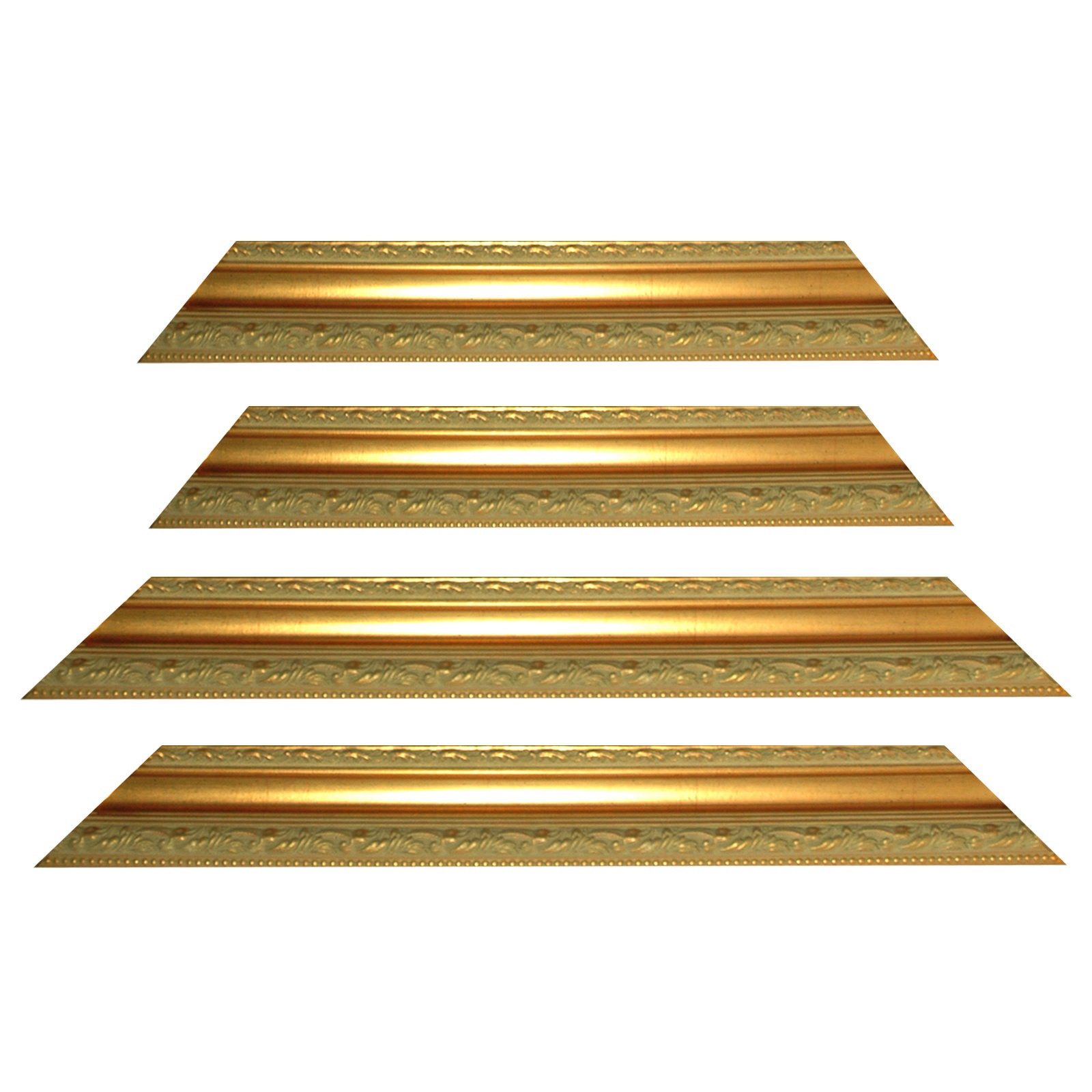 Barockrahmen BA1092, gold fein verziert, Serie 837 ORO, als Zuschnitt, Leerrahmen, Wechselrahmen oder Spiegel. Dieser goldene Barockrahmen BA1092 besitzt ein Profil von 42 mm Höhe und 85 mm Breite. Der Bilderrahmen im Barock-Stil ist hier als Zuschnitt mit Gehrung, als Leerrahmen, Wechselrahmen oder als Spiegel erhältlich. Als Rahmen gefertigt werden zur Stabilisierung an den Ecken Metallwinkel eingearbeitet und Aufhängungen für Hoch- und Querformat angebracht. Zur Erläuterung:- Zuschnitt: Profilleisten sind auf Gehrung geschnitten und nicht zusammengefügt - Leerrahmen: Profilleisten sind auf Gehrung geschnitten und zusammengefügt - Wechselrahmen: Profilleisten sind auf Gehrung geschnitten, zusammengefügt und werden mit Glas, Rückwand, Aufhängung und angestanztem Einlegeblatt komplettiert. - Spiegel: Rahmen wird mit bruchsicherem Spiegel aus Kunststoff versehen (kein Echtglasspiegel wegen Bruchgefahr)Barockbilderrahmen eignen sich klassisch im barocken Ambiente, aber auch, um mit Gegensätzen zu spielen. Zum Beispiel verwendet man moderne Farben, gepaart mit einem barocken Goldrahmen. Dies ergibt eine interessante Kombination aus den Gegensätzen von klassisch und modern. Für Maße, die hier nicht angeboten werden, fragen Sie uns bitte an. Wir als Hersteller können Ihnen jedes Maß liefern.