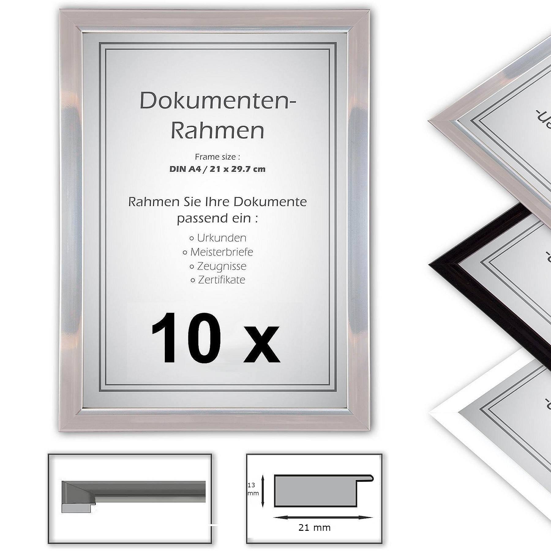 Einzelrahmen 10 x Urkundenrahmen, DIN A4, 21x29,7 cm, Farbe silber