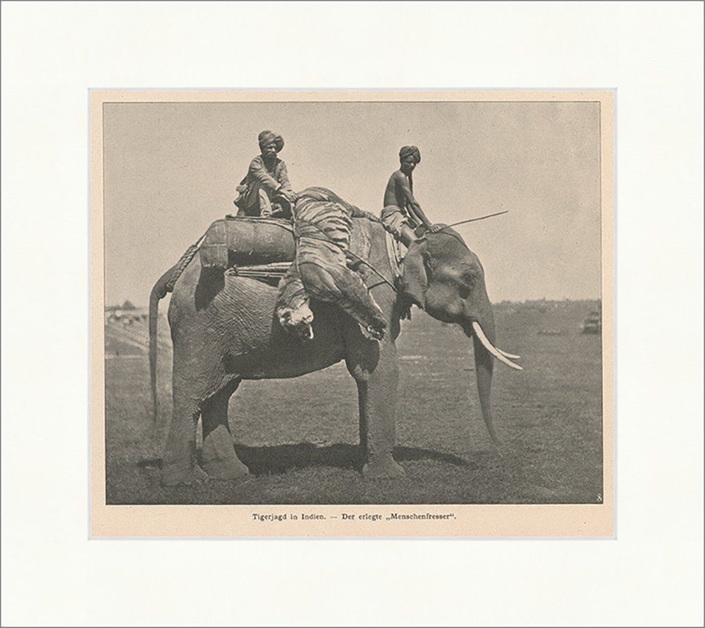 BillerAntik Kunstdruck Tigerjagd in Indien. Der erlegte Menschenfresser Elefant F_Vintage 005, (1 St)