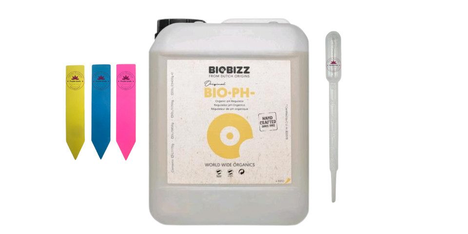 BioBizz pH Down – Organischer pH-Wert-Regulator zur Senkung des pH-Wertes (5L) Описание товара (мы ещё работаем над переводом, извините за неудобство): BioBizz pH Down ist ein organischer pH-Wert-Regulator zur schonenden Senkung des pH-Wertes in der Nährlösung – ganz ohne aggressive Chemikalien. Die auf Zitronensäure basierende Formel ist vollständig biologisch und ideal für umweltbewusste Grower sowie für den ökologischen Landbau geeignet. Ein optimal eingestellter pH-Wert ist entscheidend für die effiziente Nährstoffaufnahme und ein gesundes Pflanzenwachstum. BioBizz pH Down ist sowohl in der Wachstums- als auch in der Blütephase einsetzbar und passt perfekt zu allen BioBizz-Produkten sowie anderen organischen Düngemitteln. Die 5-Liter-Version ist ideal für größere Gärten, Gewächshäuser oder den professionellen Einsatz und sorgt für langanhaltende Versorgung. Vorteile von BioBizz pH Down: Senkt den pH-Wert zuverlässig und sanft 100 % organisch – auf pflanzlicher Zitronensäurebasis Ohne aggressive Chemikalien – bestens geeignet für den Bio-Anbau Fördert die Nährstoffverfügbarkeit durch pH-Stabilität Für alle Phasen des Pflanzenzyklus geeignet Kompatibel mit Erde, Kokos, Hydro und allen organischen Nährstoffsystemen Anwendung: Vor Gebrauch gut schütteln. Nach dem Anmischen der Nährlösung den pH-Wert kontrollieren. Bei zu hohem Wert pH Down tropfenweise zugeben, umrühren und erneut messen – bis der ideale pH-Wert zwischen 6,2 und 6,5 erreicht ist. Lieferumfang: 1 × BioBizz pH Down (5 Liter) 1 × Dosierpipette zur exakten Anwendung 3 × Pflanzenschilder (Farbe zufällig)