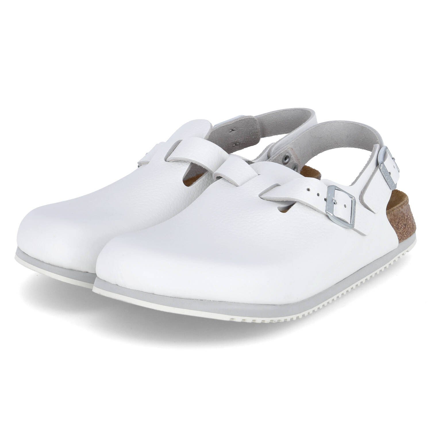 Birkenstock Damen Pantoletten/ Clogs TOKIO PROF Weiß Glattleder - zwei Schnallen - vorgeformtes Kork-Tieffußbett mit Lederbezug - kaltes Lederfutter - EVA-Laufsohle mit Profil