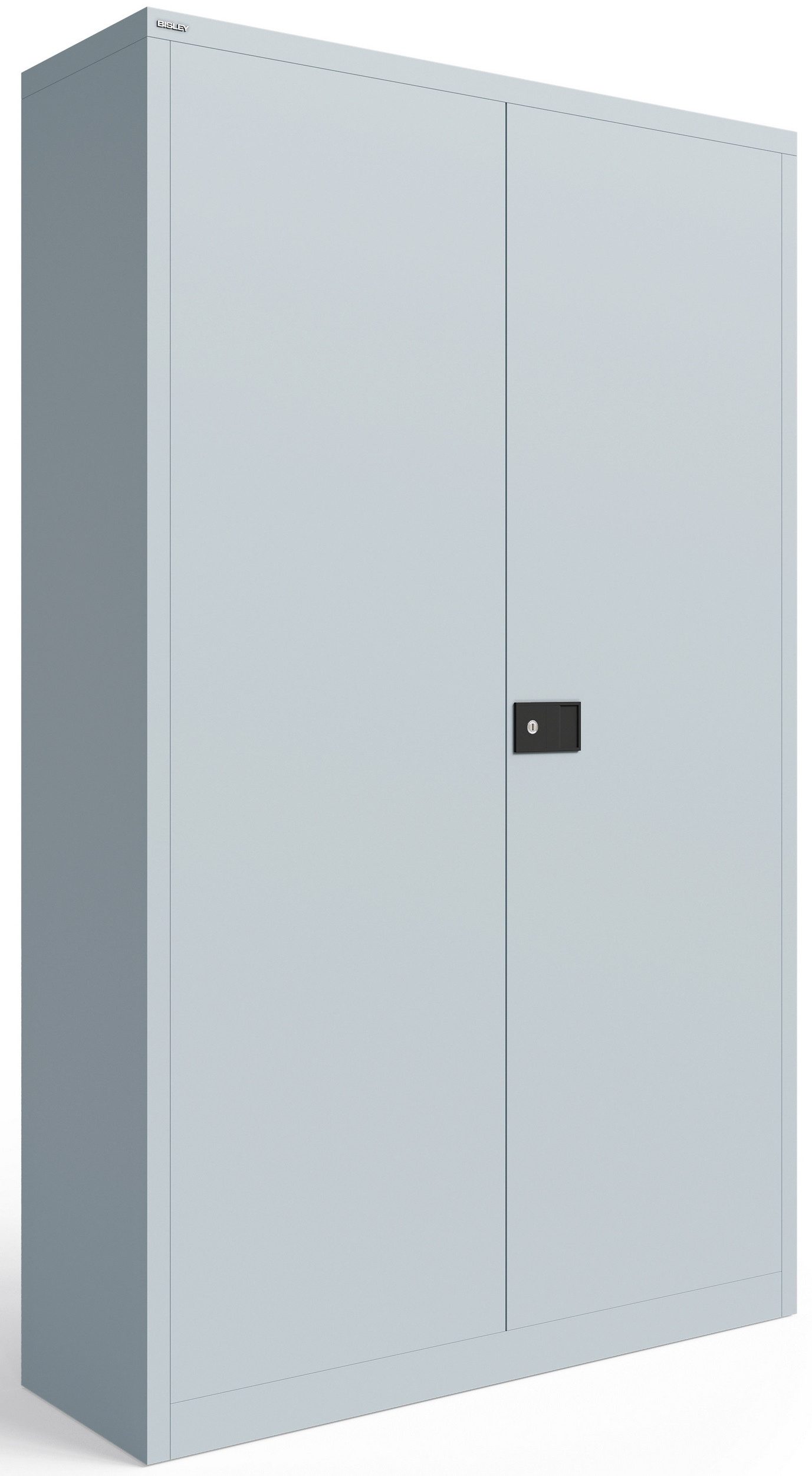 Ausstattung | Abschließbar Verstellbare, lackierte Fachböden Robuster, geschweißter Korpus aus hochwertigem Stahlblech Zusätzlich verstärkte Türen Mit Schloss (3-Punkt-Schließmechanismus) inkl. 2 Schlüssel |