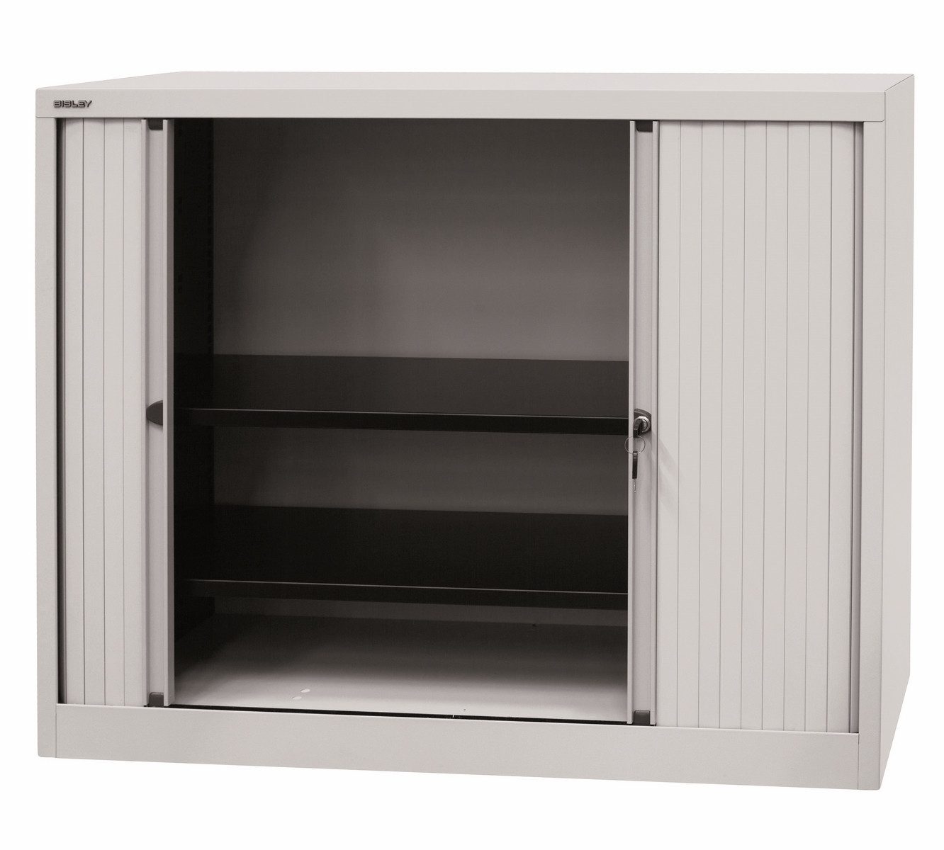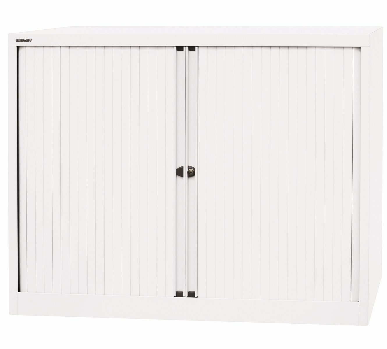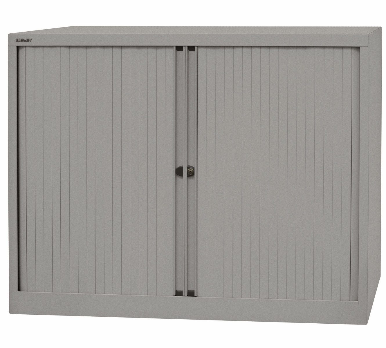 Der Bisley Euro Rollladenschrank ist durch seine geringe Stell- und Öffnungstiefe von 43cm die ideale Lösung für das Arbeitszimmer mit wenig Platz. Die geschwungenen Kunststofflamellen lassen sich sehr leicht, horizontal zu 100% auf- und zuziehen. Bei dem Schrankkörper wurde auf das bewährte 0,8mm dicke Stahlblech in gewohnt guter Bisley Qualität gesetzt. Die mitgelieferten Einlegböden können auf einer extra Konstruktion im Schrankinneren, im Ratser von 19mm problemlos eingesetzt und arretiert werden. Durch die zweite Wand im Inneren wird dem Schrank zusätzliche Stabiliät verliehen wodurch die einzelnen Einleböden mit 60kg belastet werden können. Bei der Lackierung wird die bekannte, sandfeine Strukturlackierung von Bisley verwendet. Durch diesen hochwertigen und zugleich widerstandfähigen Lack werden Fingerabdrücke, auch bei starker Benutzung, nie sichtbar.