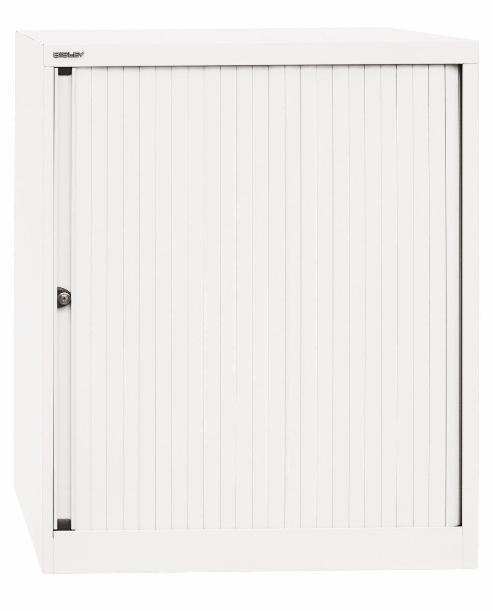 Der Bisley Euro Rollladenschrank ist durch seine geringe Stell- und Öffnungstiefe von 43cm die ideale Lösung für das Arbeitszimmer mit wenig Platz. Die geschwungenen Kunststofflamellen lassen sich sehr leicht, horizontal zu 100% auf- und zuziehen. Bei dem Schrankkörper wurde auf das bewährte 0,8mm dicke Stahlblech in gewohnt guter Bisley Qualität gesetzt. Die mitgelieferten Einlegböden können auf einer extra Konstruktion im Schrankinneren, im Ratser von 19mm problemlos eingesetzt und arretiert werden. Durch die zweite Wand im Inneren wird dem Schrank zusätzliche Stabiliät verliehen wodurch die einzelnen Einleböden mit 60kg belastet werden können. Bei der Lackierung wird die bekannte, sandfeine Strukturlackierung von Bisley verwendet. Durch diesen hochwertigen und zugleich widerstandfähigen Lack werden Fingerabdrücke, auch bei starker Benutzung, nie sichtbar.