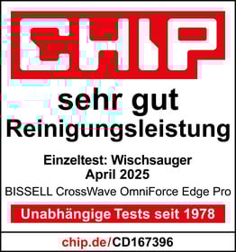 Hineingeschleppte, matschige Pfotenabdrücke. Wollmäuse in der Ecke. Müsli auf dem ganzen Boden verteilt. Entfernen Sie diese Flecken und noch vieles mehr mit dem neuen CrossWave® OmniForce™ Edge Pro All-in-One Mehrflächen-Reiniger.Der CrossWave® OmniForce™ Edge Pro ist der einzige Nass-Trocken-Sauger mit separater Trockenreinigungsfunktion, dem Power Vac Modus. Im Power Mop Modus saugt und wischt er dagegen gleichzeitig und entfernt so schneller alltägliche nasse und trockene Flecken. In beiden Modi bietet der CrossWave® OmniForce™ Edge Pro 75 % mehr Saugkraft*. Dank der ZeroGap™-Technologie können Sie leicht bis zur Wand reinigen und mit der verhedderungsfreien Technologie wird die Bildung von Haarknäulen minimiert.Der CrossWave® OmniForce™ Edge Pro wurde entwickelt, um durch Haustiere verursachte Flecken fachmännisch zu reinigen. Das Pet-Proven-Siegel garantiert, dass dieses Produkt strengen Labor- und Heimtests unterzogen wurde, um die Erwartungen und Bedürfnisse von Haustierbesitzern zu übertreffen.Im Gegensatz zu Mopp und Eimer hält die Zwei-Tank-Technologie das saubere und das schmutzige Wasser getrennt, sodass Sie Ihre Böden immer mit frischem Wasser reinigen.Wenn Sie mit dem Putzen fertig sind, stellen Sie den CrossWave® OmniForce™ Edge Pro in die Parkstation. Dort reinigt sich das Gerät auf Knopfdruck ganz von selbst. Dabei wird nicht nur die Bürstenrolle gereinigt, sondern auch das Innere des Gerätes.So entsteht weniger Reinigungsaufwand nach jedem Gebrauch.