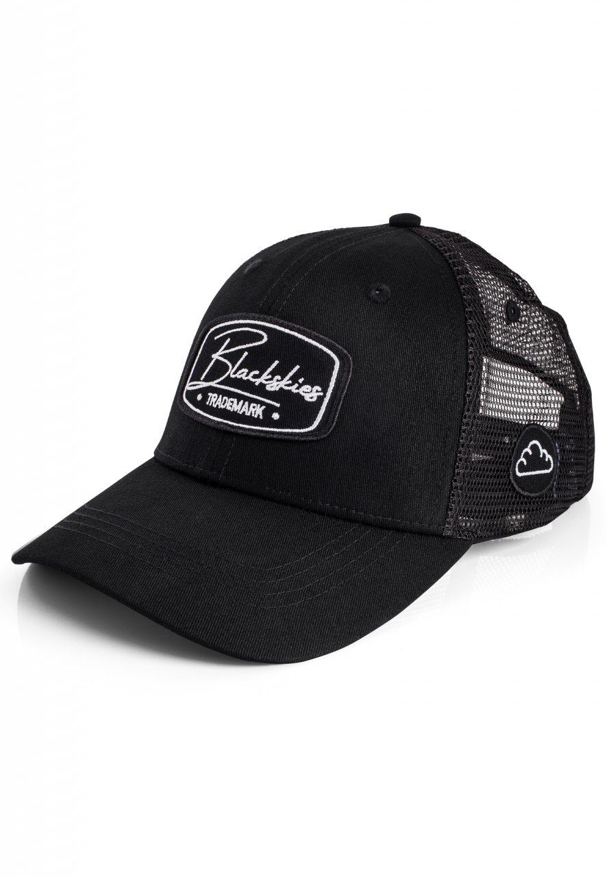 Cleane schwarze Trucker-Baseballcap aus Baumwolle auf der Vorderseite und Mesh-Netz auf der Rückseite. Mit einem Brandlogopatch und einem kleinen "Cloud"-Logoaufnäher an der Seite. - Einheitsgröße - 56 - 61cm (verstellbar) - Blackskies Cloud"-Patch an der Seite - Schirm und Frontpanels: 100% Baumwolle - Rückseite: 100% Polyester - klimaneutrale Produktion und Versand (natureOffice.com | ID DE-077-252257)