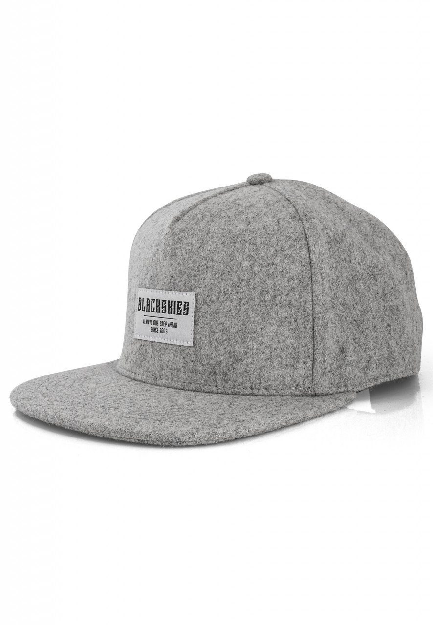 Graue Flanell Snapback Cap mit gewebtem Brandlogopatch auf dem Frontpanel • Einheitsgröße - 56-62 cm (einstellbar) • 'Blackskies Cloud' Seitenlogo-Stick • 50% Polyester - 50% Wolle • Klimaneutrale Produktion und Versand ( natureOffice.com | ID DE-077-252257)