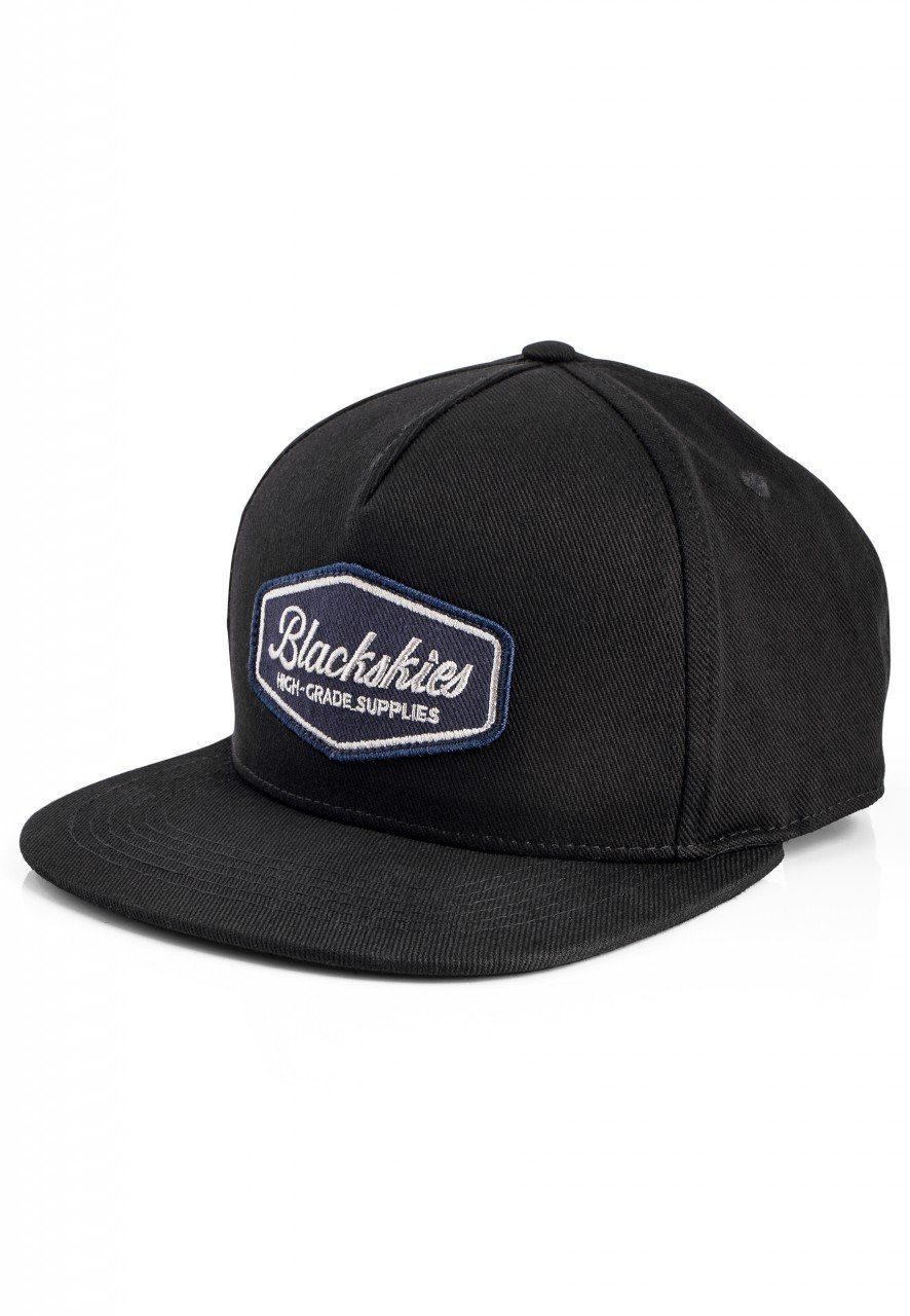 Schwarze Basecap mit farblich abgestimmtem navyblauen Patch auf der Vorderseite • Einheitsgröße - 56-62 cm (einstellbar) • 'Blackskies Cloud' Seitenlogo-Stick • 100% Baumwolle • Klimaneutrale Produktion und Versand ( natureOffice.com | ID DE-077-252257)