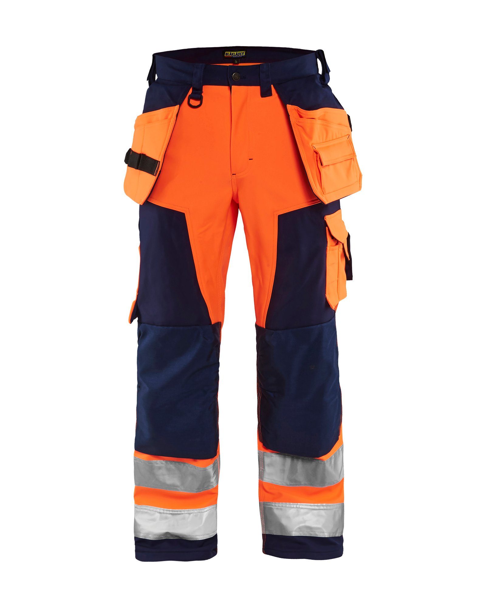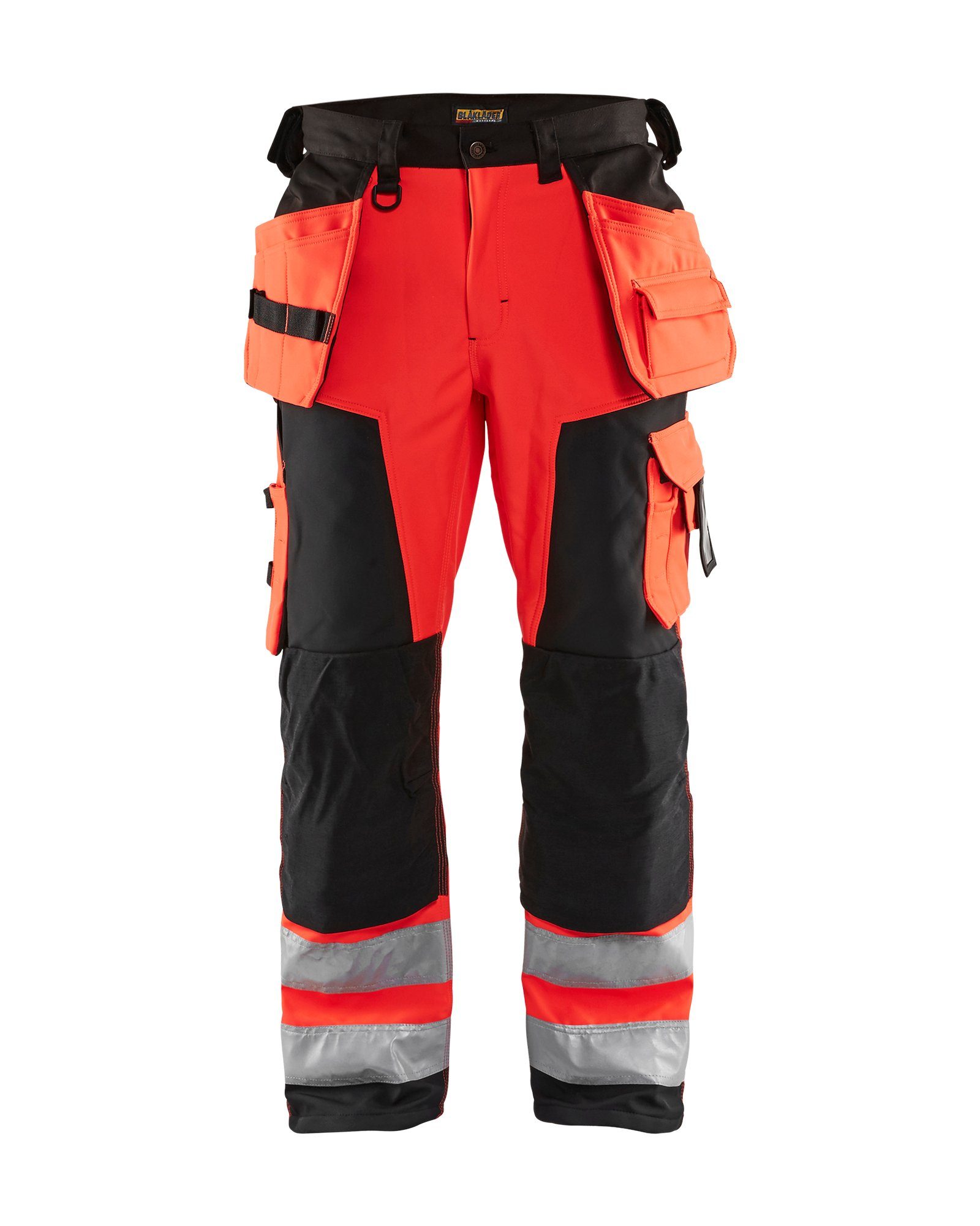 Warnschutz Handwerker-Arbeitshose in flexiblem Softshell-Material. Der hervorragende Schnitt kombiniert mit flexiblem, wind-und wasserabweisenden Material macht diese Hose zur perfekten Wahl für Arbeiten bei schlechtem Wetter. Die bekannten Funktionen einer Blakläder-Handwerkerhose sind natürlich auch hier verarbeitet. Zertifiziert nach EN 471/20471, Klasse 2.