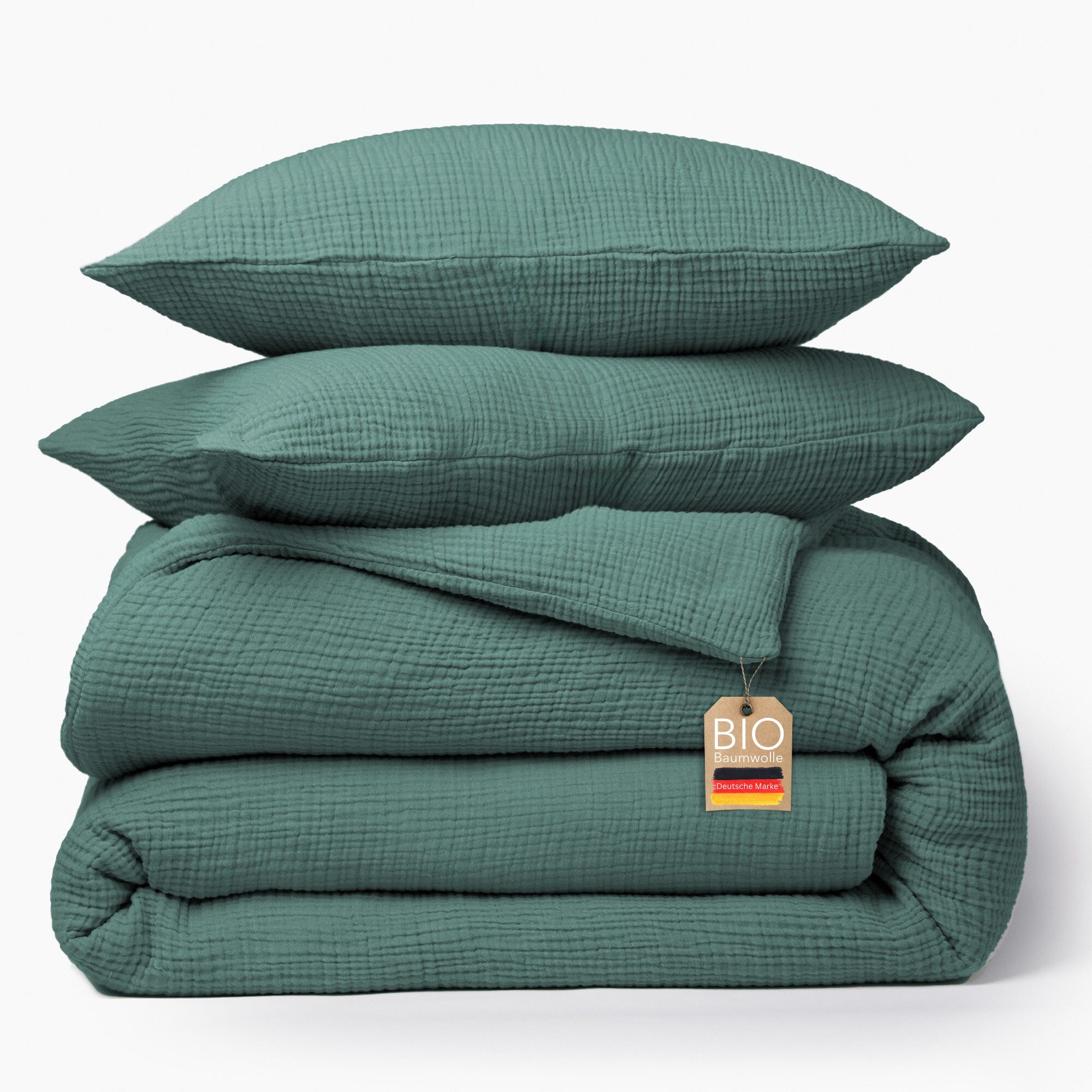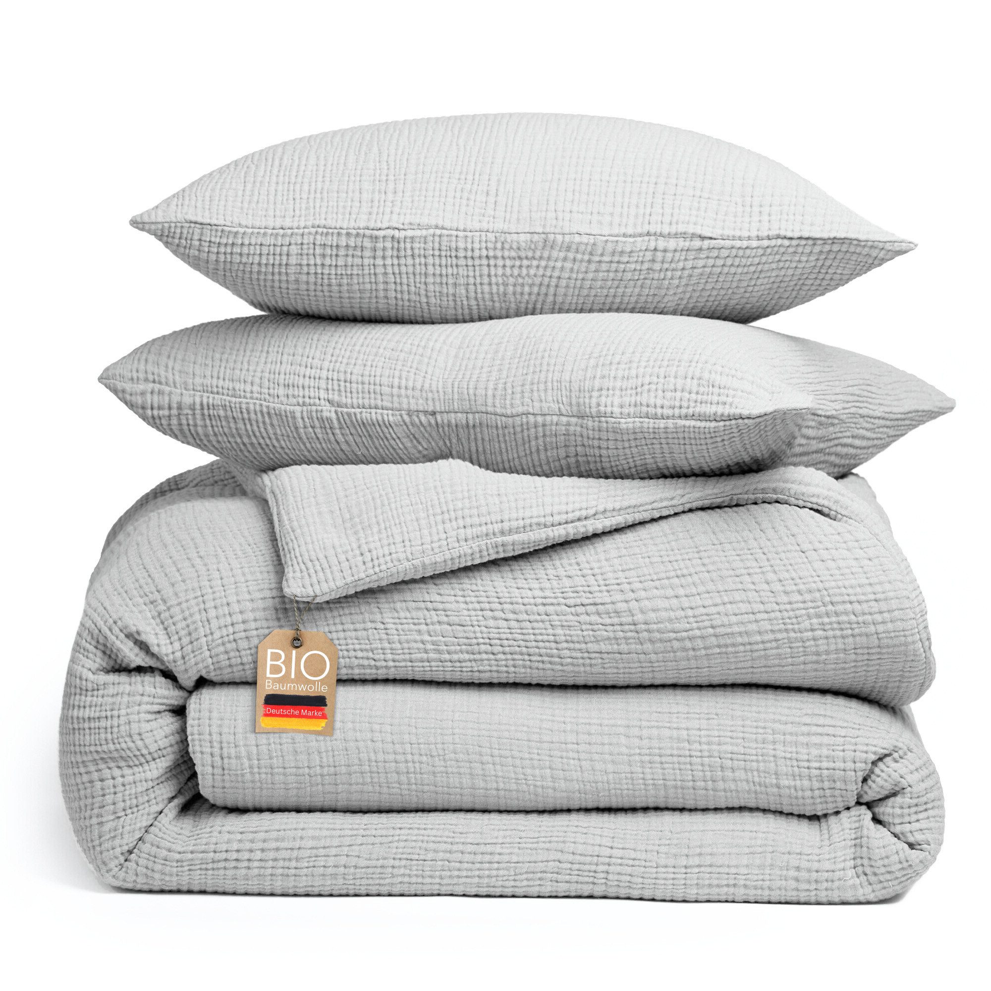 Das Blanketino Bettwäsche-Set aus 100% Musselin-Bio-Baumwolle steht für höchste Qualität und unvergleichlichen Schlafkomfort. Jedes Set wurde mit größter Sorgfalt und 4 lagigem Musselin hergestellt, um dir ein weiches und angenehmes Schlafgefühl zu bieten.