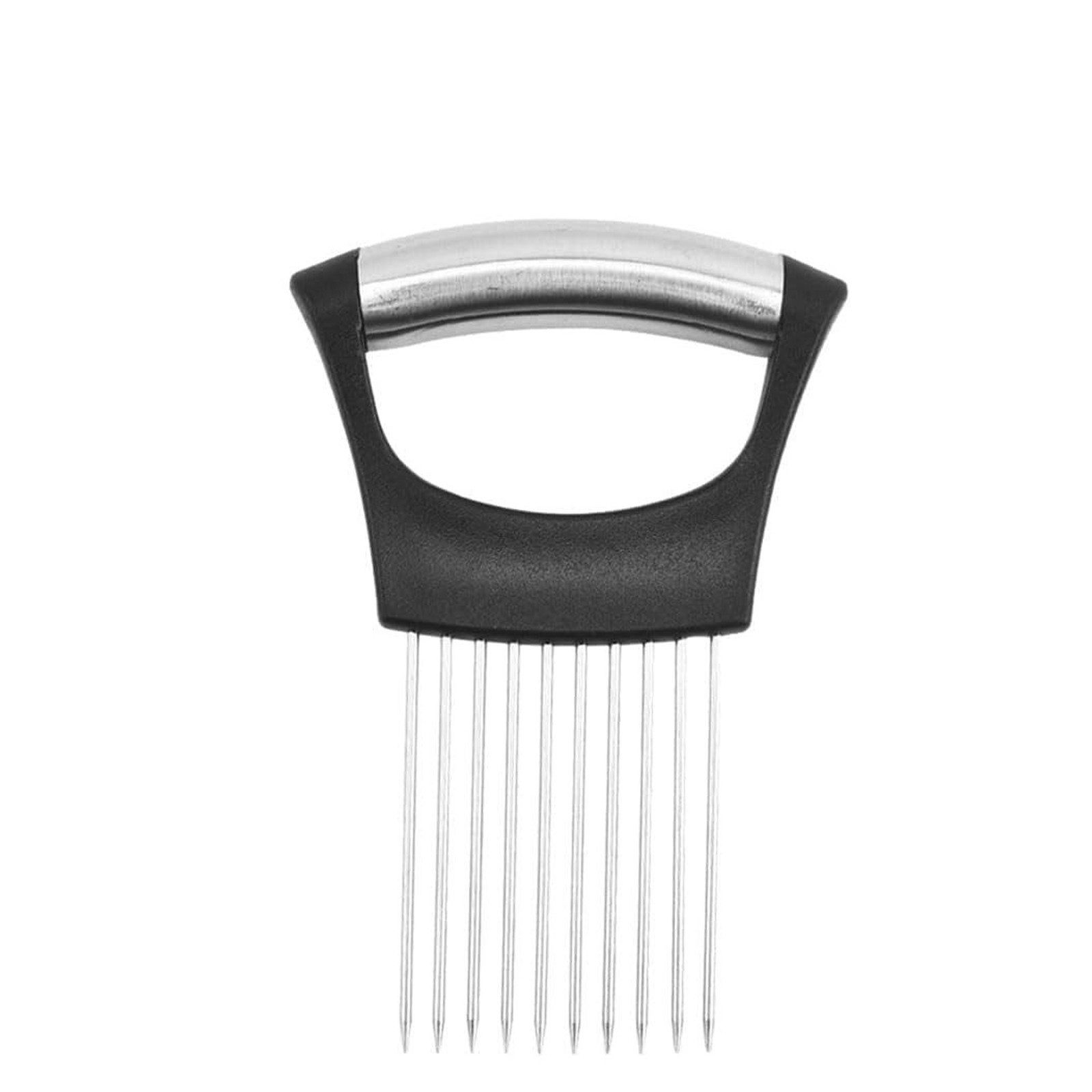 Zwiebelhalter aus Edelstahl zum Schneiden, Zwiebelschneider Schneidehilfe Gemüsehobel Gemüse Frucht Rindfleisch Zwiebel Schneidmaschine Edelstahl Fleisch Nadel Zwiebelschneider