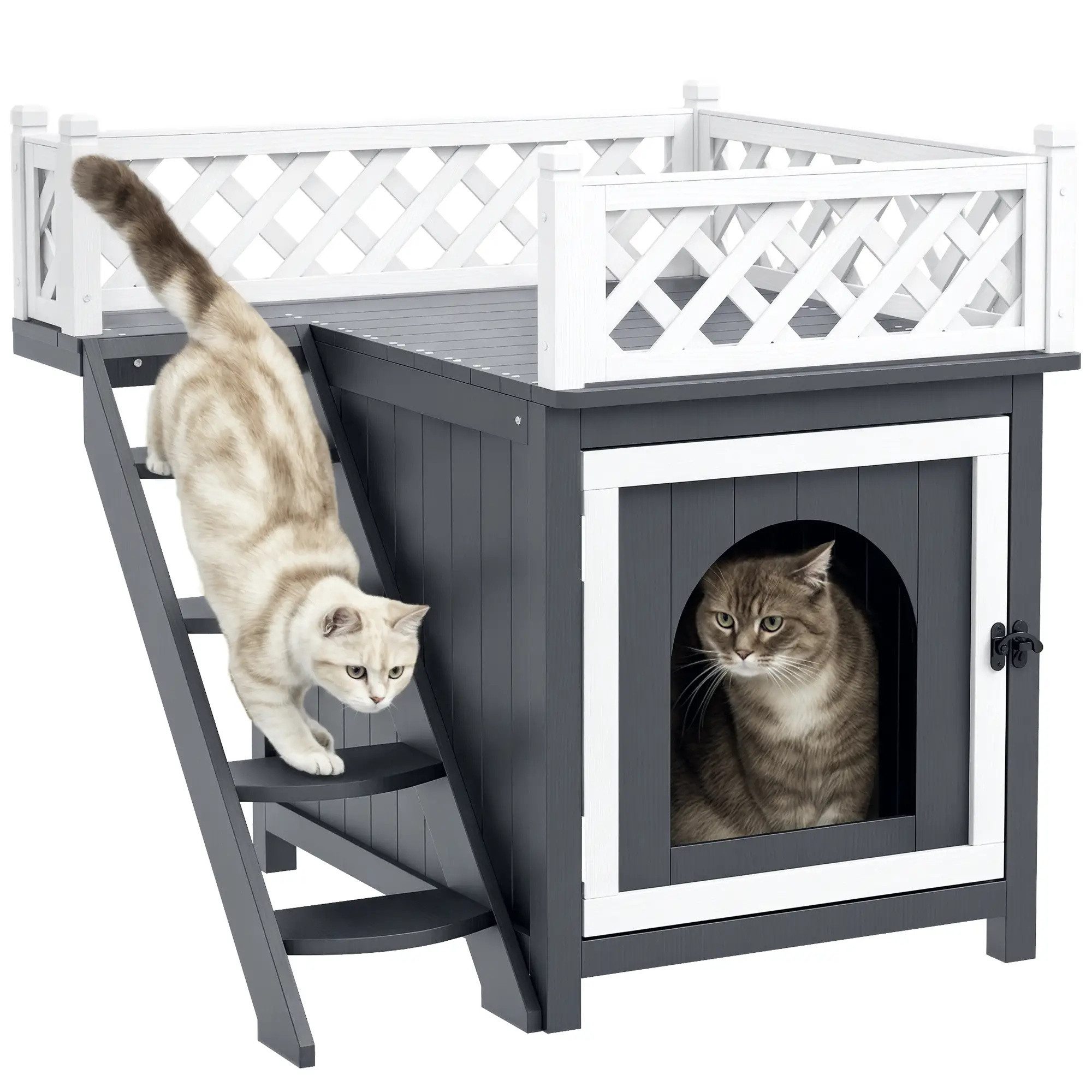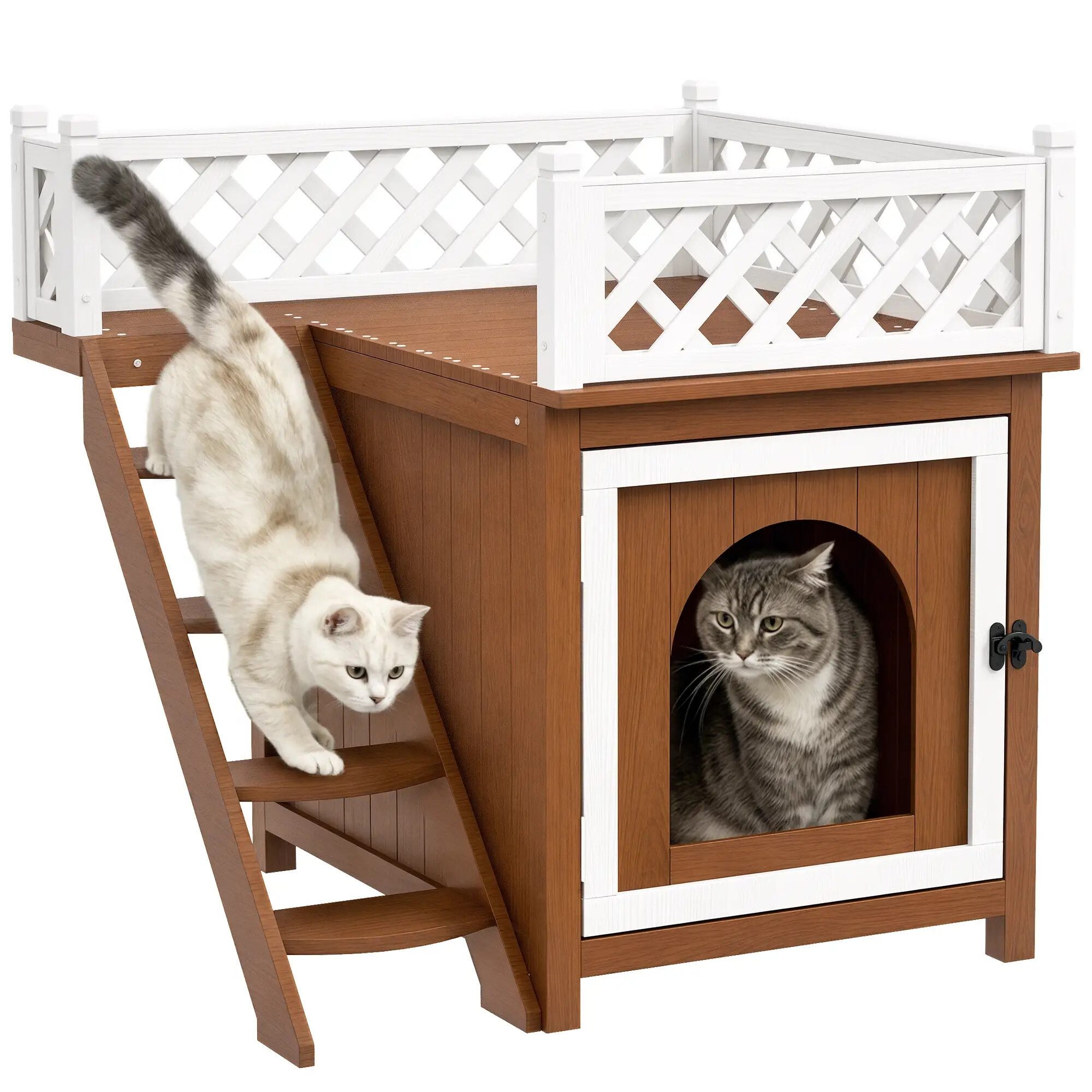 ☑[ Stabile& sichere Konstruktion]:Gefertigt aus massivem Tannenholz, überzeugtdie Katzenhütte durch hohe Stabilität und Langlebigkeit. Der dekorative Zaunauf der oberen Ebene sorgt nicht nur für Sicherheit, sondern verleiht demKatzenhaus auch ein rustikales Landhaus-Design, das optisch in jeden Gartenoder Wohnraum passt.