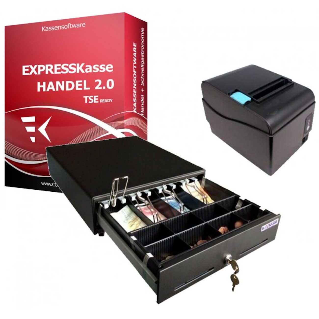Lieferumfang: Kassensoftware ExpressKasse HandelX2, USB-LAN Bondrucker