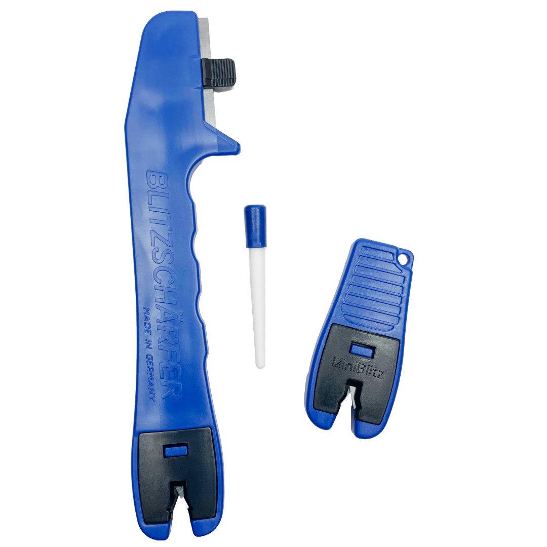 Der große Blitzschärfer ermöglicht eine effiziente und sichere Schärfung für verschiedene Klingenarten, während der kleine Miniblitz-Schärfer sich ideal für unterwegs oder das Nachschärfen von Gartenwerkzeugen eignet. Der Hartmetall-Schleifeinsatz sorgt für eine schnelle und gleichmäßige Schärfung stumpfer Klingen, während der vorgegebene Schärfwinkel eine optimale Klingenführung gewährleistet und für eine langlebige und präzise Schneidleistung sorgt.