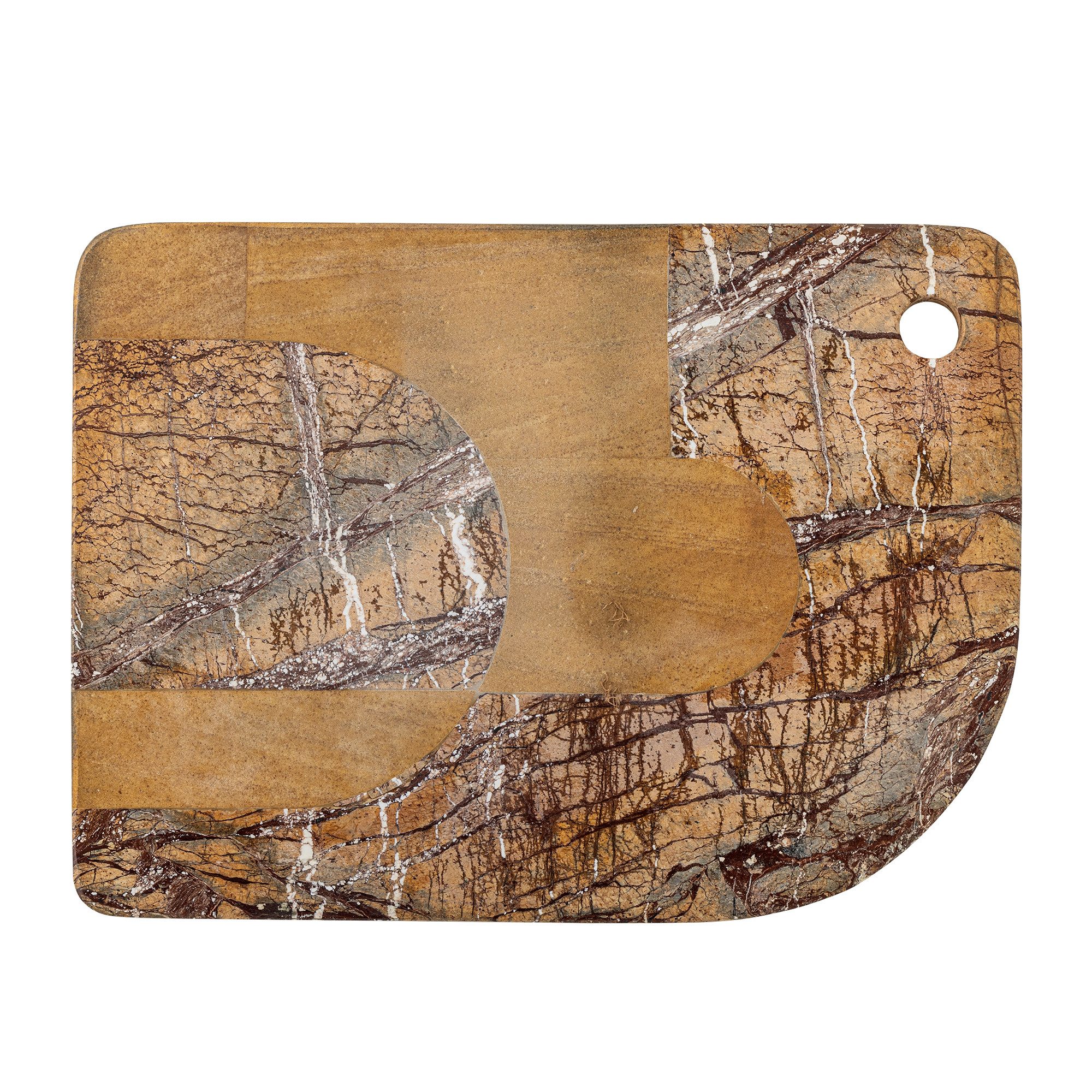 Das Abrianna Schneidebrett von Bloomingville verbindet die edle Optik von Marmor mit funktionaler Vielseitigkeit. Seine warme braune Farbgebung und das einzigartige Maserungsmuster erinnern an natürliches Holz und verleihen Ihrer Küche eine elegante, rustikale Note. Ob als stilvolle Schneideunterlage oder dekoratives Servierbrett – dieses Accessoire wertet jede Küchenumgebung auf.