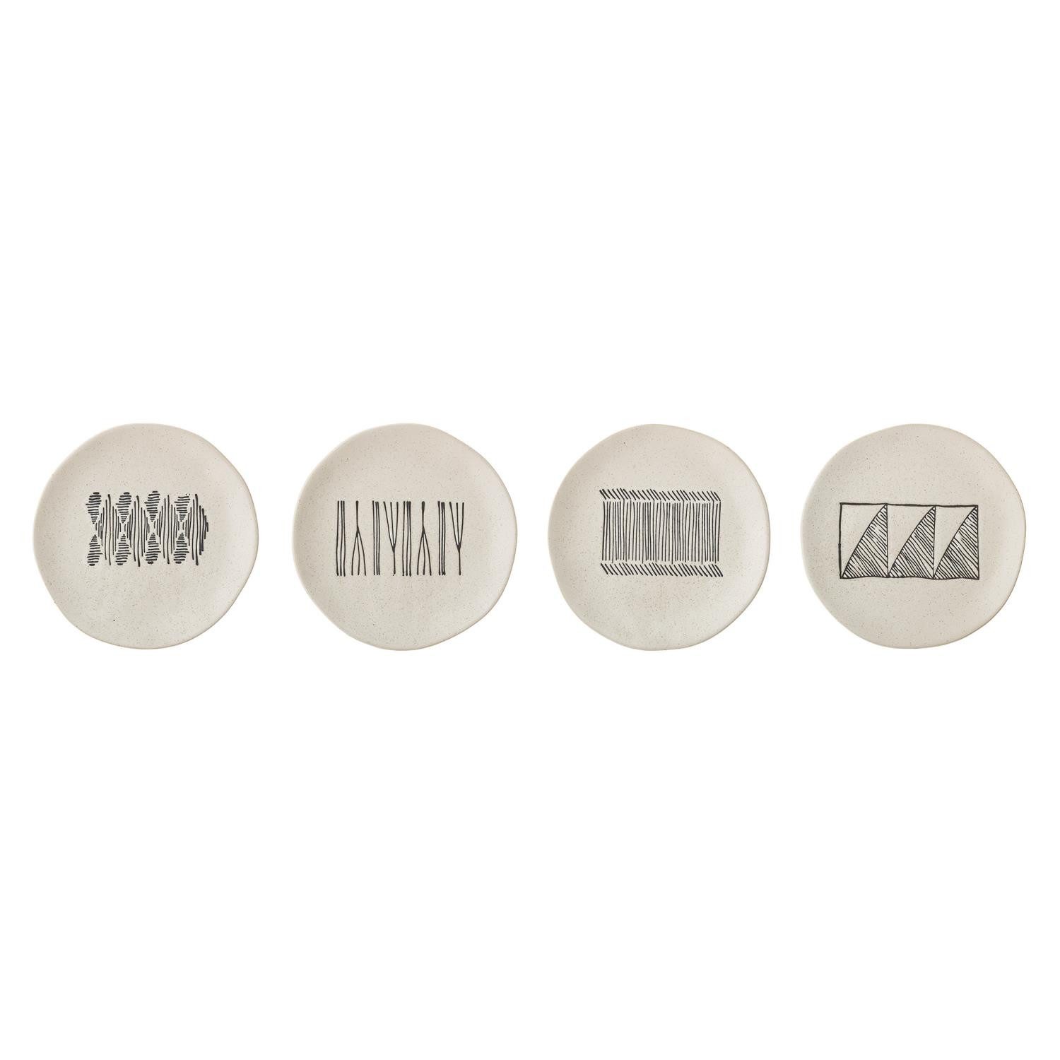 Lieferumfang: 4 Kuchenteller Maße: Durchmesser 19cm Material: Keramik / Stoneware Ceramic Farbe: weiß schwarz Spülmaschinengeeignet, Microwellengeeignet, ofenfest