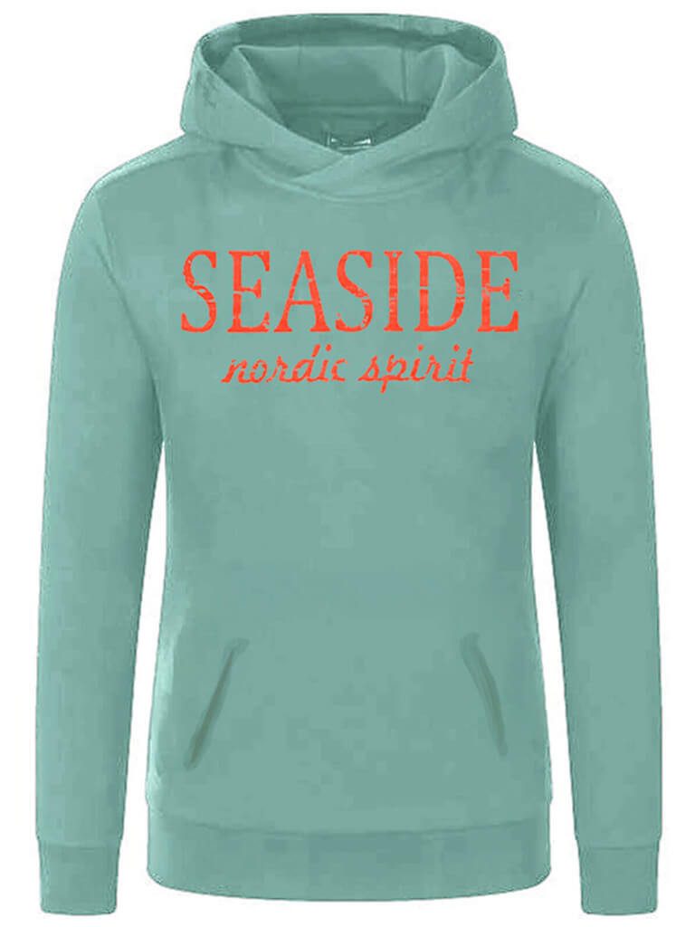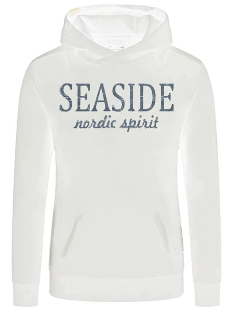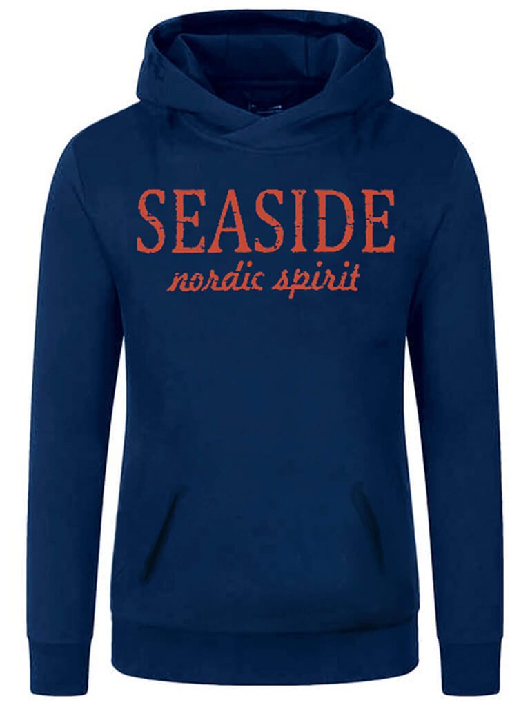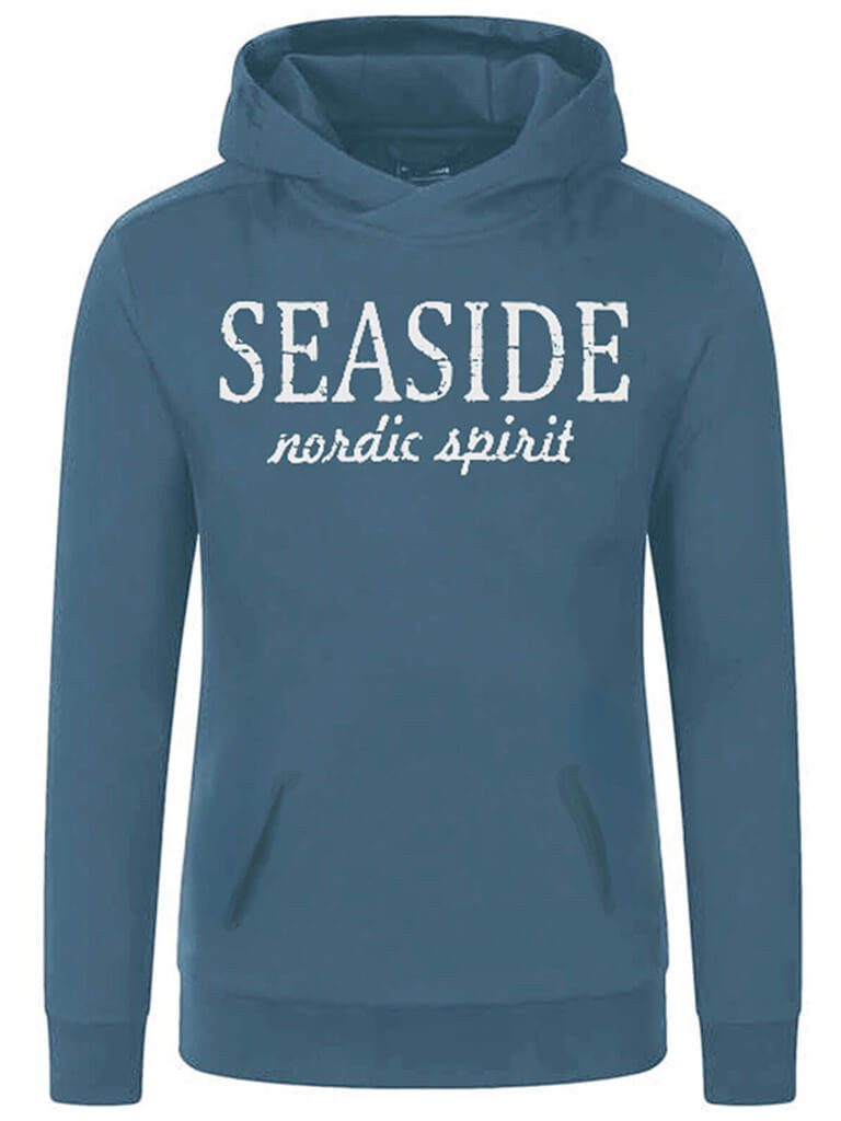 Der gerade Schnitt sorgt für eine lässige Passform, die zu jedem Look passt. Der modische Brustdruck "SEASIDE nordic spirit" verleiht dem Hoodie einen frischen und maritimen Touch. Mit seiner klassischen Kapuze und den praktischen Kängurutaschen wird er schnell zum Lieblingsstück für jede Gelegenheit. Gefertigt aus 300 g/m² hochwertigem Material, bietet der Sweathoody nicht nur eine angenehme Haptik, sondern auch Langlebigkeit. Die Rippbündchen an Ärmeln und Saum sorgen für eine perfekte Passform und halten die Wärme an kühleren Tagen. Mit seinem weichen Stoff und der bequemen Passform bietet der Pulli einen angenehmen Tragekomfort, der sowohl drinnen als auch draußen überzeugt. Der Sweathoody ist vielseitig kombinierbar und ideal für Spaziergänge am Strand, entspannte Stunden im Café oder einen aktiven Tag unterwegs.