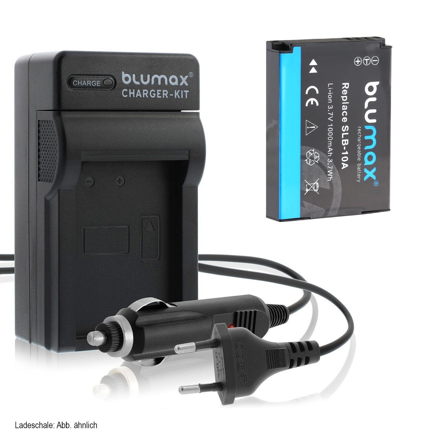 Blumax Set mit Lader für Samsung SLB-10A WB550 1000 mAh Kamera-Ladegerät