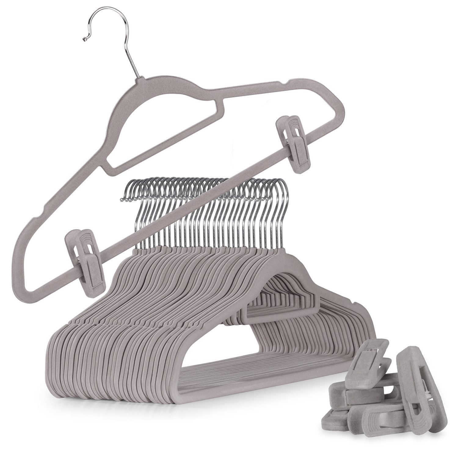 Unser Kleiderbügel Set ist der perfekte Kleiderschrank Organizer. Der Bügel ist dank seines flachen Profils besonders platzsparend und so der ideal geeignet für Hosen, T-Shirts, Blusen, Jacken, Pullover und andere Kleidung. Ebenfalls ist unser Bügel mit einem Haken ausgestattet, der sich für eine leichte Positionierung in Ihrem Kleiderschrank um 360° drehen lässt. Besonders praktisch ist dabei die rutschfeste Samt-ähnliche Beschaffenheit, denn diese gibt Ihrer Kleidung zusätzlichen Halt und sorgt dafür, dass diese nicht verrutscht. Erhältlich als 20er, 30er, 50er oder 100er Set in den Farben Schwarz, Grau, Ivory und Misty rose.