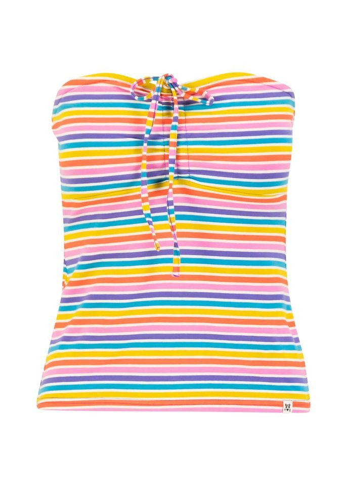 Das Blutsgeschwister Tube Top ist die perfekte Wahl für einen femininen und sommerlichen Look. Der körpernahe Schnitt und das gestreifte Design in frischen Farben unterstreichen Ihre Silhouette, während der Herzausschnitt mit dezenter Raffung auf Brusthöhe für eine stilvolle Note sorgt. Der weiche Bio-Baumwoll-Jersey mit Elasthan-Anteil garantiert ein angenehmes Tragegefühl – ideal für heiße Tage.