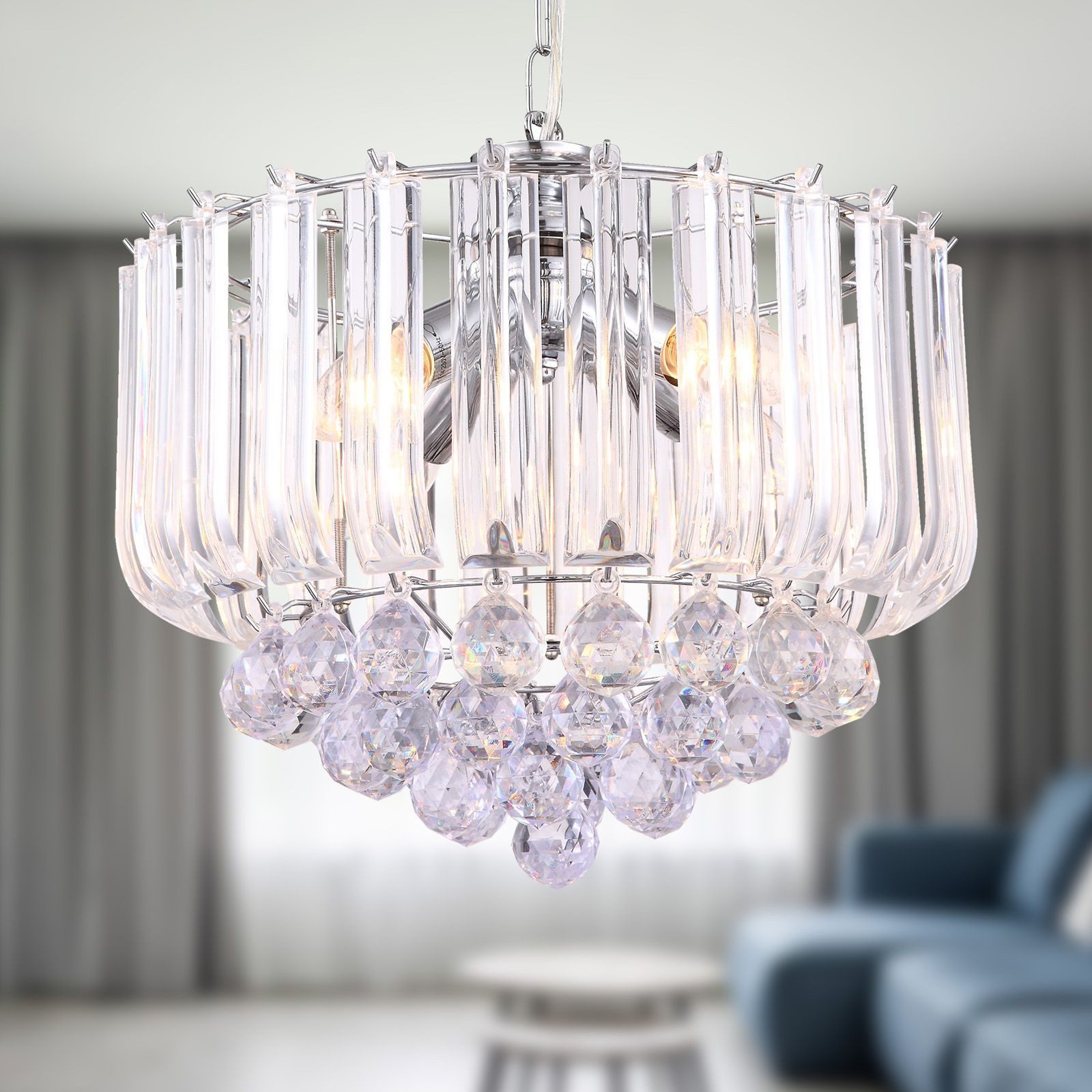 Wissenswertes | HÄNGELAMPE - KRISTALLE - KRONLEUCHTER Mit einem Durchmesser von 35 cm und einer Длина von 90 cm ragt dieser stilvolle Luster in den Raum. Diese verchromte Lampe ist mit klaren Acrylkristallen und klarem Acryl bestückt. Ausgestattet mit vier E14 Fassungen (max. 40W) ermöglicht Ihnen dieses Modell die freie Leuchtmittelwahl. Aufgrund ihrer Stromersparnis und Langlebigkeit empfehlen wir Ihnen LED-Lampen. |