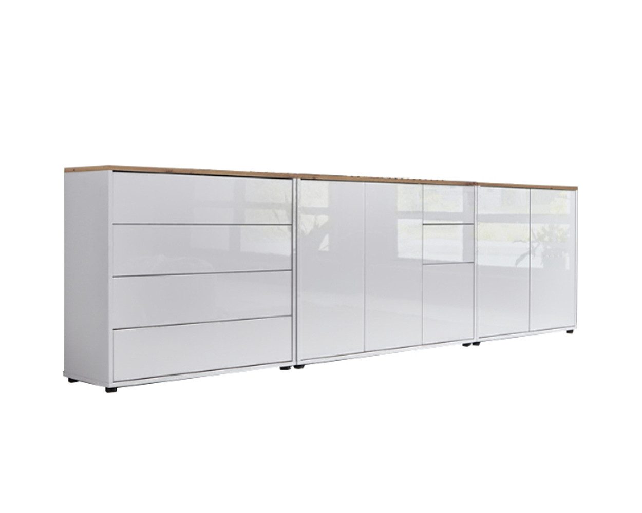 Farbe | Weiß, Weiß Hochglanz mit Oberboden in Artisan Eiche |