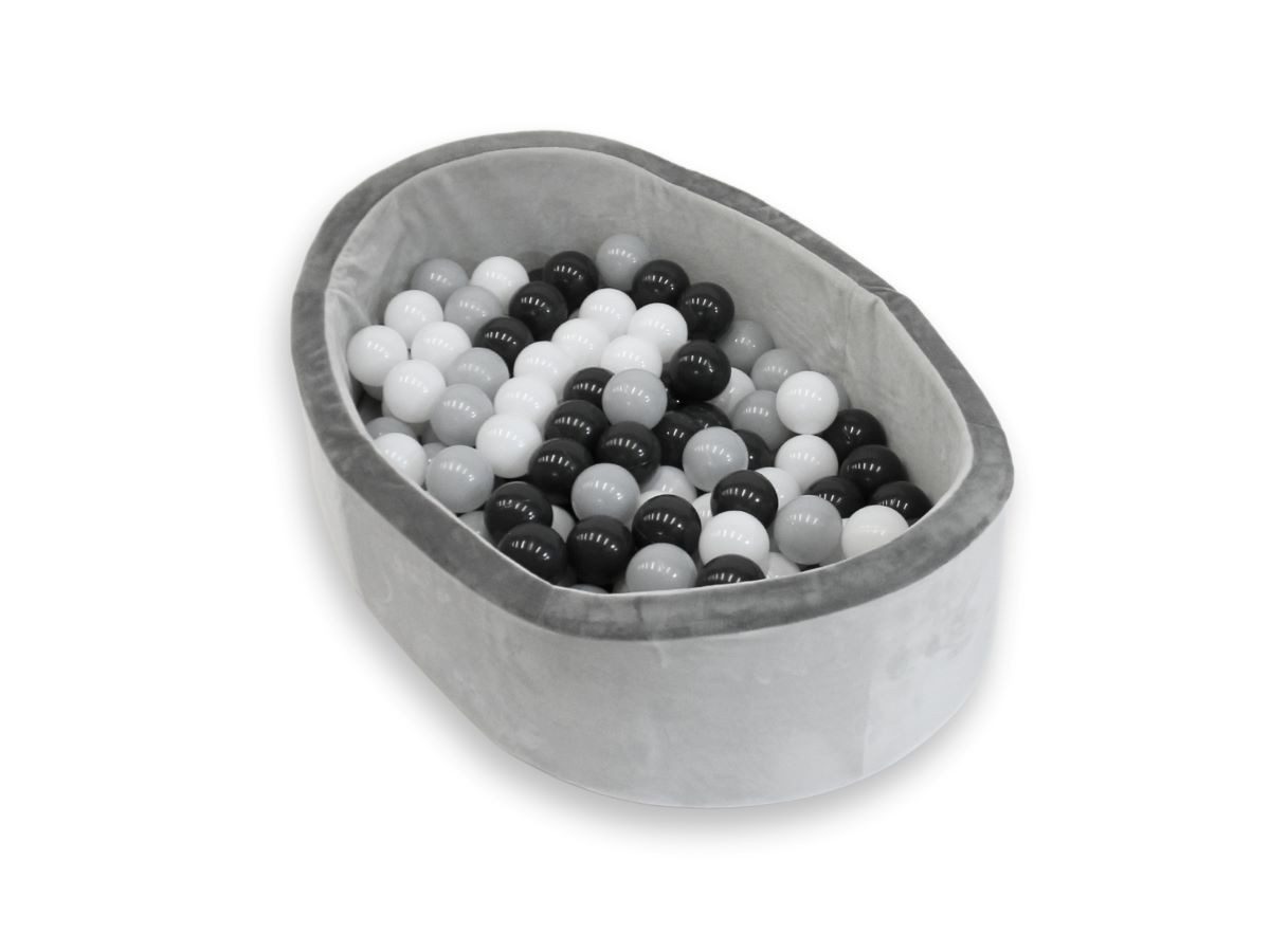 Das graue Bällebad von Bo Jungle vereint stilvolles Design mit maximalen Spielspaß und fügt sich harmonisch in jeden Wohnraum ein. Hergestellt aus weichem Schaumstoff und umhüllt von einem abnehmbaren Velboa-Bezug, bietet das Kinderbällebad höchsten Komfort und langlebige Qualität. Geeignet ist das Bällebad für Kinder ab 18 Monaten. Die sanft abgerundeten Kanten sorgen für ein sicheres Spielerlebnis und bieten grenzenlose Fantasie für kleine Abenteurer. Die Spieloase mit Bällen unterstützt die motorische Entwicklung Deines Kindes und fördert gleichzeitig die sensorische Wahrnehmung sowie die Kreativität.