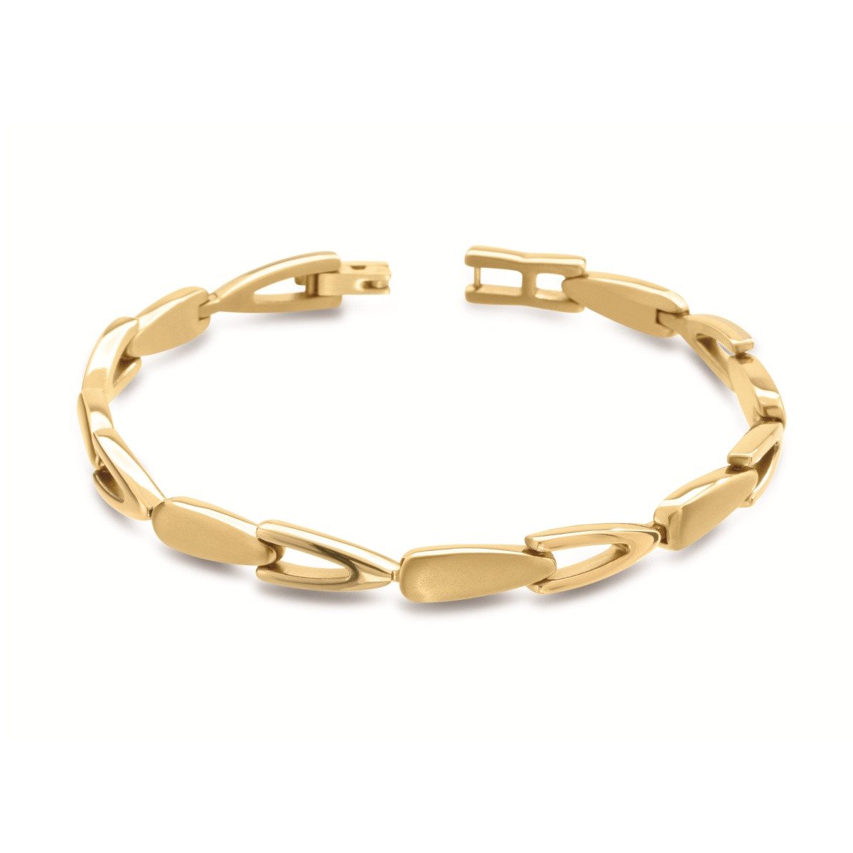 Dieses Armband von Boccia, kann seine Trägerinnen durch das elegante Design und das phänomenale Preis-Leistungs-Verhältnis überzeugen. Da das Schmuckstück aus goldplattiertem Titan gefertigt wurde, verfügt das Schmuckstück über einen enormen Tragekomfort, welcher durch das geringe Gewicht entsteht. Da das Armband einfarbig ist, können Sie es zu so gut wie jedem Anlass anziehen.