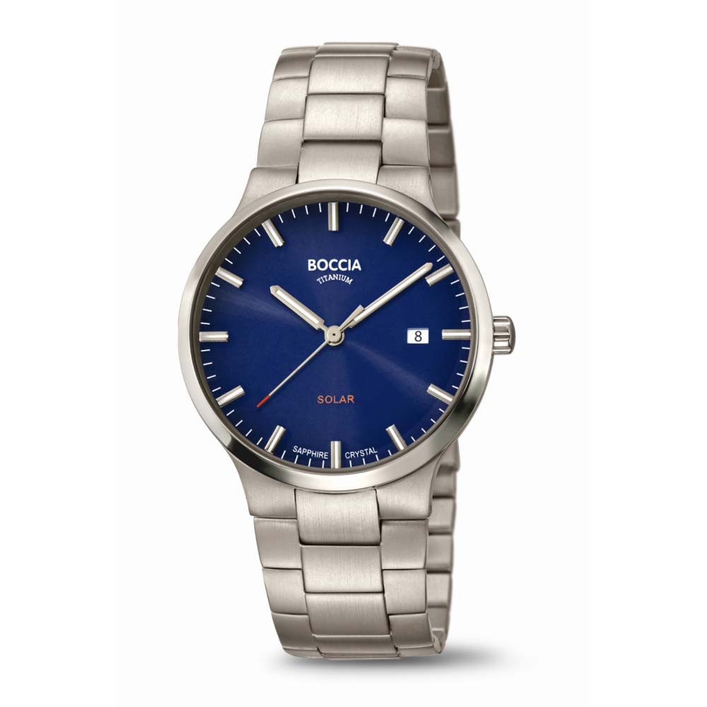 Die zeitlose Solar Herrenarmbanduhr ist aus Titan hergestellt. Diese wird durch künstliches und natürliches Licht aufgeladen. Das blaue Zifferblatt hat lumineszierende Indexe, lumineszierende Zeiger sowie eine Datumsanzeige auf drei Uhr. Die Uhr wird durch ein kratzfestes Saphirglas geschützt und bis zu 5 ATM wasserdicht. Sie können diese Modell zu jedem Anlass tragen.