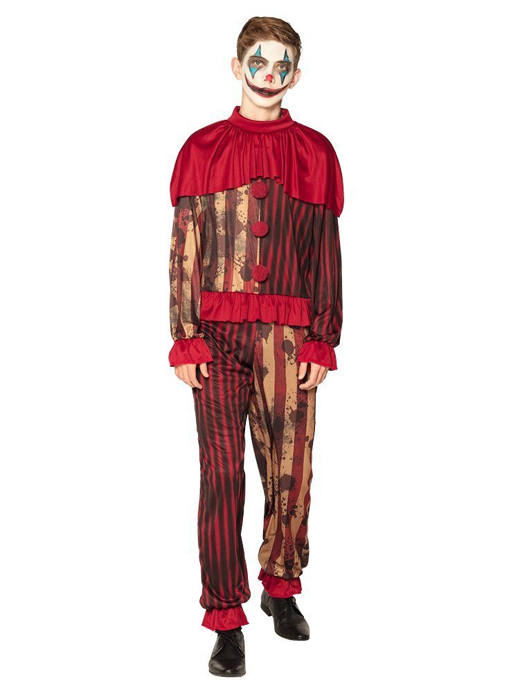 Ausstattung | - Horrorfilm Clown Kostüm für Jugendliche zweiteilig- mit Kostümoverall- mit Schulterkragen |