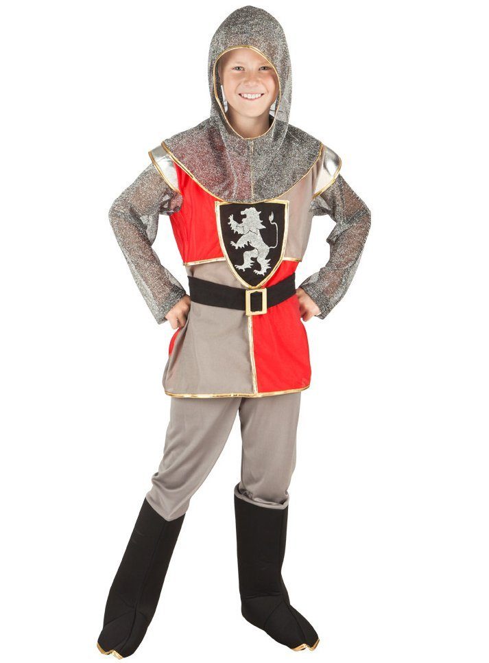 Ausstattung | - Tapferer Ritter Kinderkostüm vierteilig- mit Tunika- mit Kapuze- Hose mit angenähten Gamaschen- mit Gürtel |