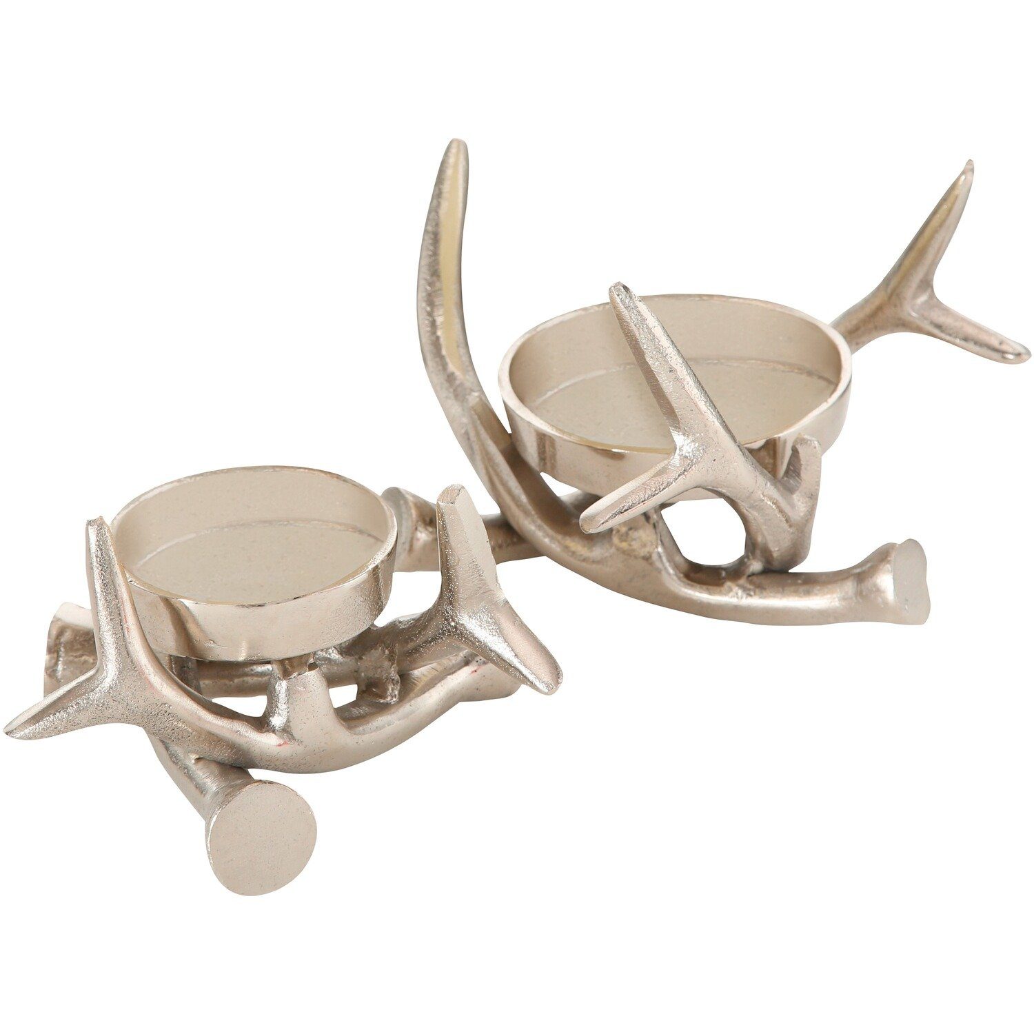 Ein Hauch von Luxus: Der Kerzenleuchter Brano, 2-tlg. Exquisites Design und hochwertiges Material Der neue Kerzenleuchter Brano in 2-teiliger Ausführung ist ein wahrer Hingucker und eine Bereicherung für jedes Wohnambiente. Aus Aluminium gefertigt. Das schönste Set besticht durch seine edle silberne Farbe, die Eleganz und Exklusivität ausstrahlt. Stilvolle Akzente setzen mit einzigartiger Formgebung Das extravagante Design in Form von Hirschgeweihen verleiht dem Kerzenleuchter Brano seinen unverwechselbaren Charme. Die kunstvolle Nachbildung der Geweihe spiegelt einen Hauch von Wildnis und erzeugt gleichzeitig ein Gefühl der Harmonie. Dieser Kerzenleuchter wird zu einem echten Blickfang und setzt stilvolle Akzente in Ihrem Wohnraum. Optimale Vielseitigkeit und Nutzen Mit dem exklusivsten Kerzenleuchter Brano bringen Sie nicht nur Licht, sondern auch eine Portion Exklusivität in Ihre Räume. Dieser schicke und elegante Kerzenleuchter setzt überall glanzvolle Akzente. Dieses außergewöhnliche Deko-Element unterstreicht den Charme Ihres Zuhauses. Впередe Produktdetails: Farbe: Silber; Material: Aluminium; Maße (LxBxH): 41x21x47 cm; Gewicht: 923 g